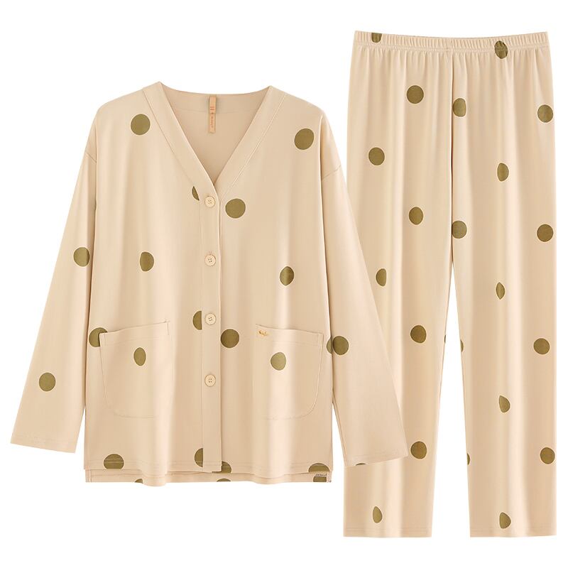 Carrefine パジャマ女性の春秋秋の秋秋綿長袖ホームウェア夏薄手大サイズスーツ jial39048976518