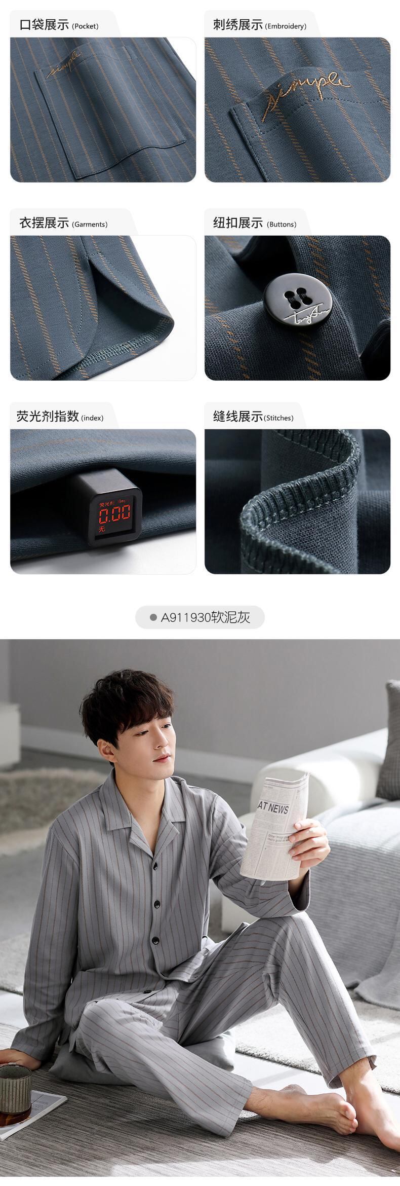 【ショッピングモールも同じスタイル】カルフィーヌパジャマメンズ春秋コットン長袖ルームウェアメンズプラスサイズスーツ jial93303385268