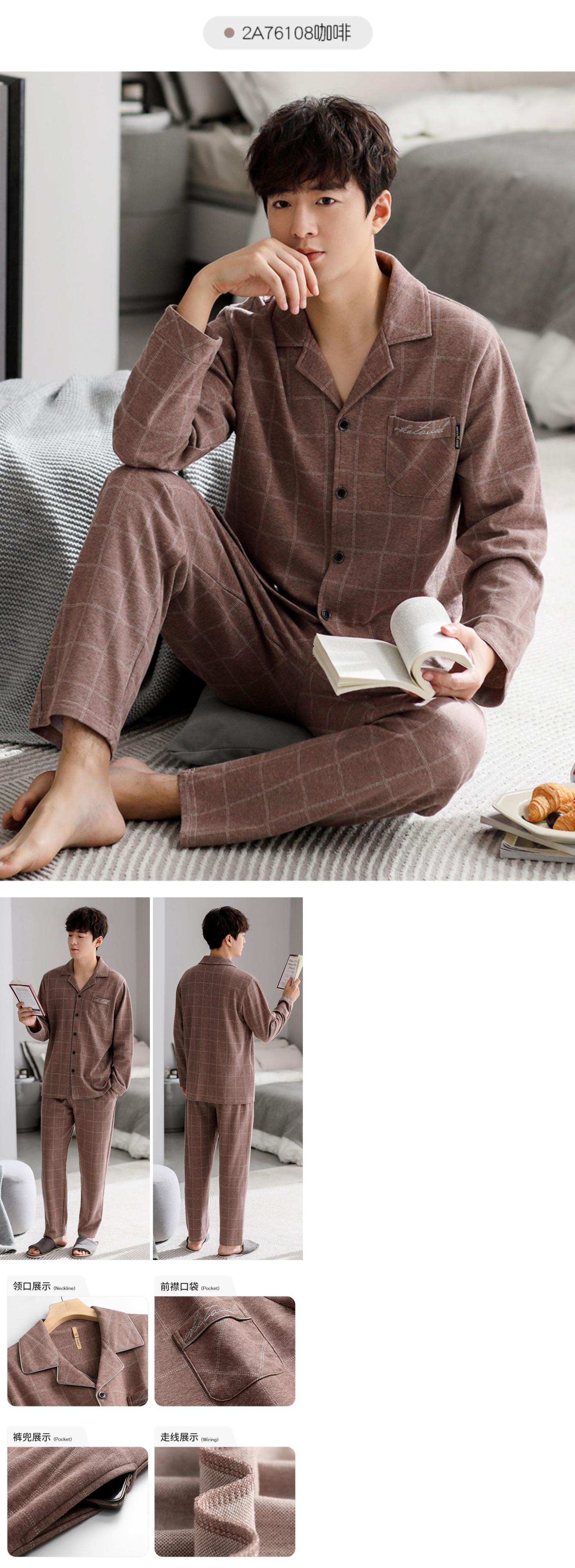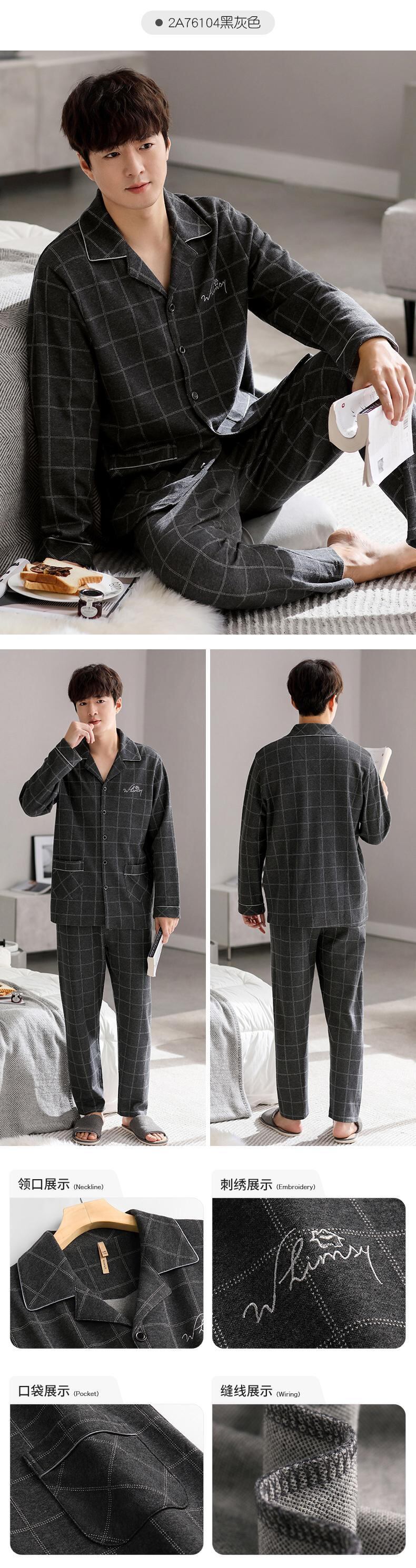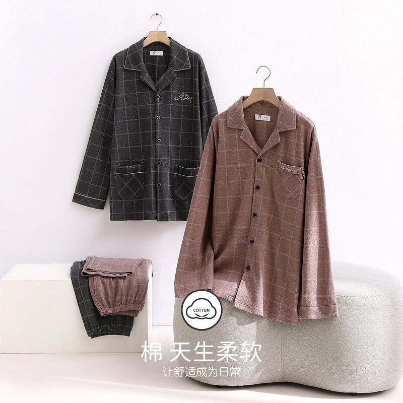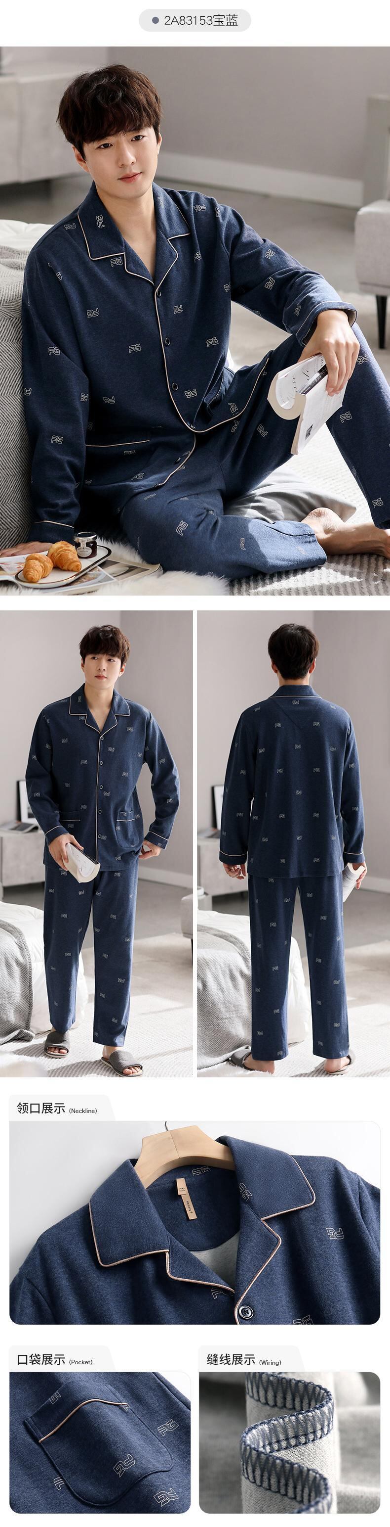 【色綿ヤスリ】ジアレフェンパジャマメンズ春秋コットン長袖ホーム服メンズ増厚スーツ jial74833726042