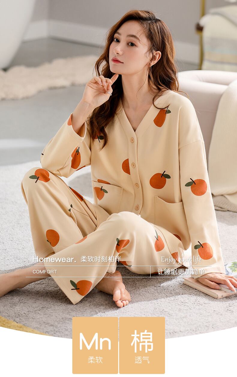Carrefine パジャマ春秋秋秋の綿長袖夏薄型ホームウェアプラスサイズのスーツ jial73018773259