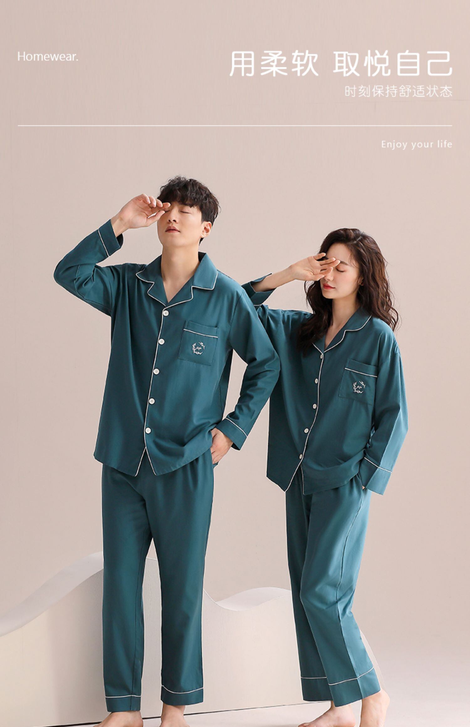 【Lenzing Modal】カップル パジャマ メンズ 春秋 長袖 ホームウェア レディース アイスシルク 夏 薄手 スーツ jial12109502112