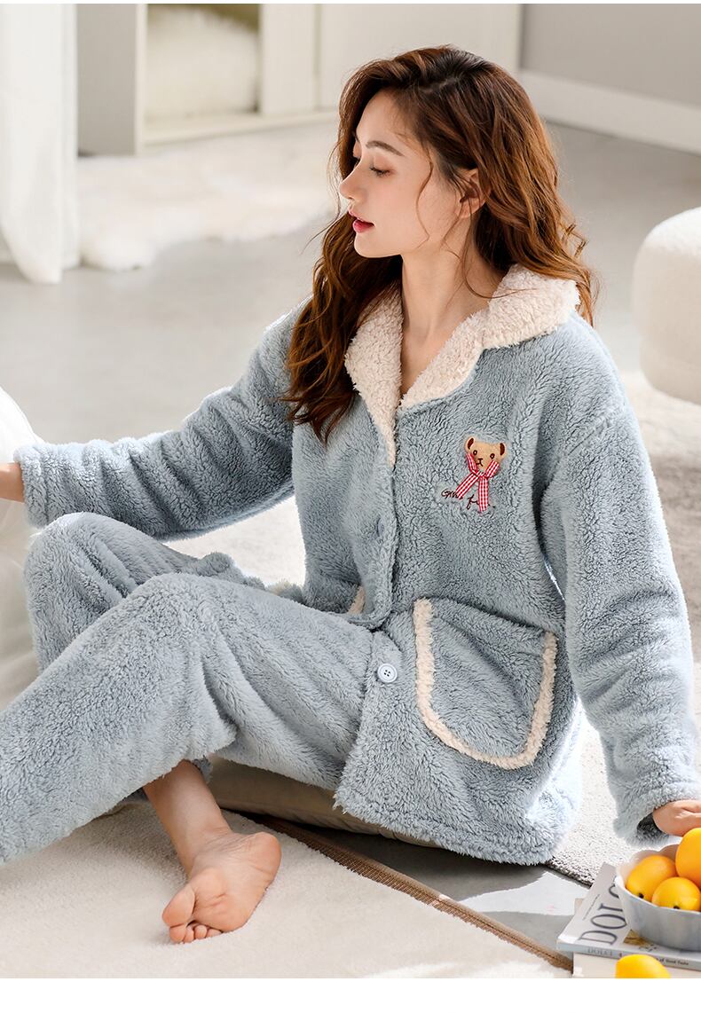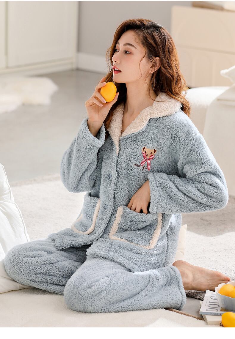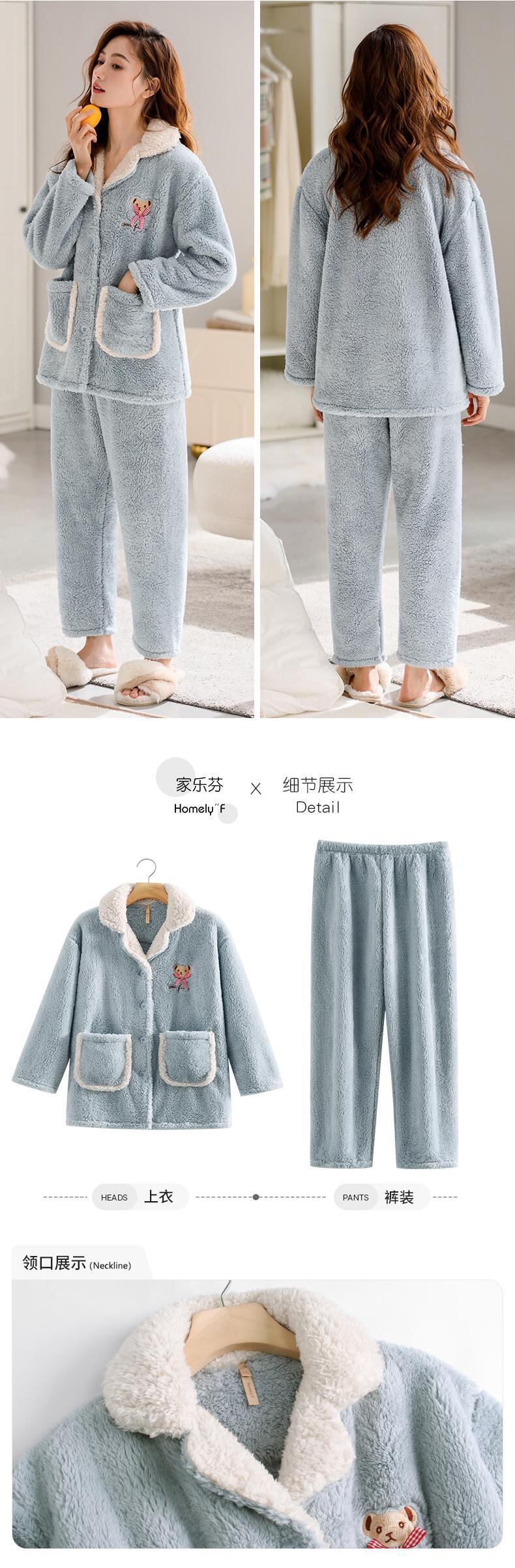 Jiarefen レディース パジャマ冬の女性の秋と冬のフランネル プラス ベルベット厚いサンゴ ベルベット ホーム服冬 jial12150560383