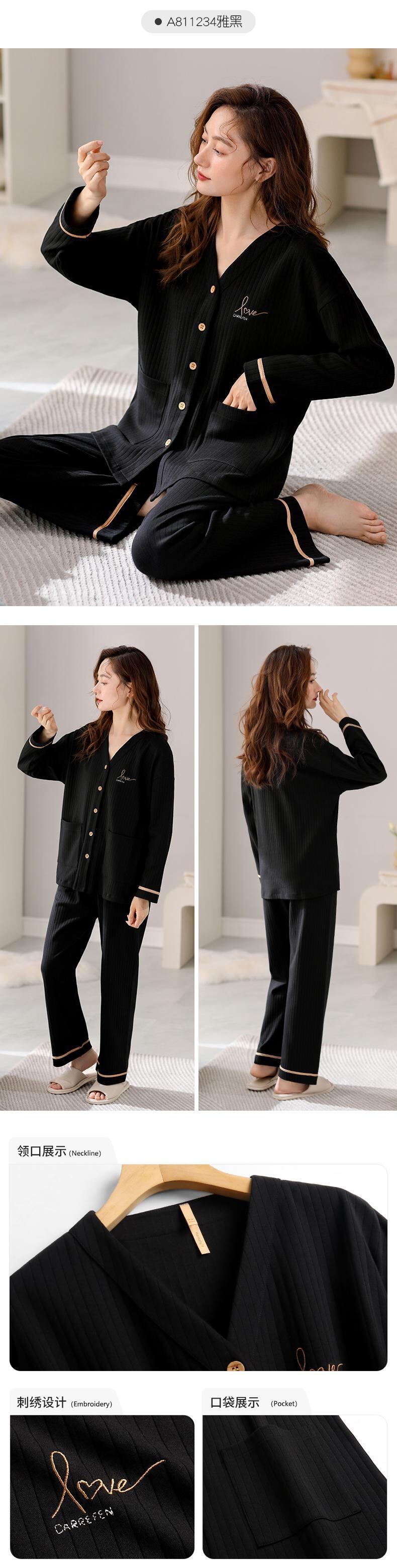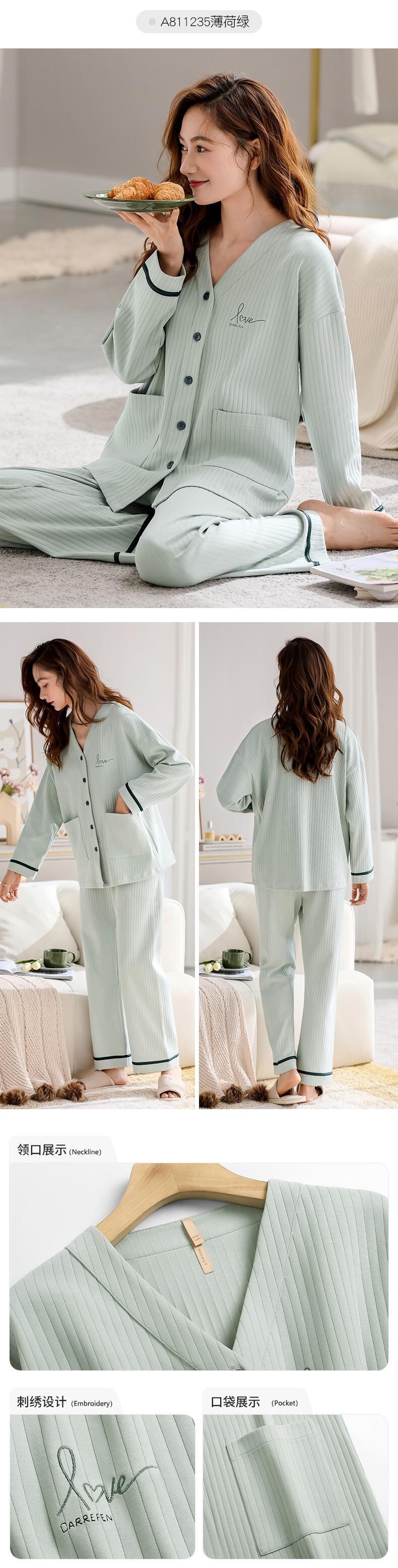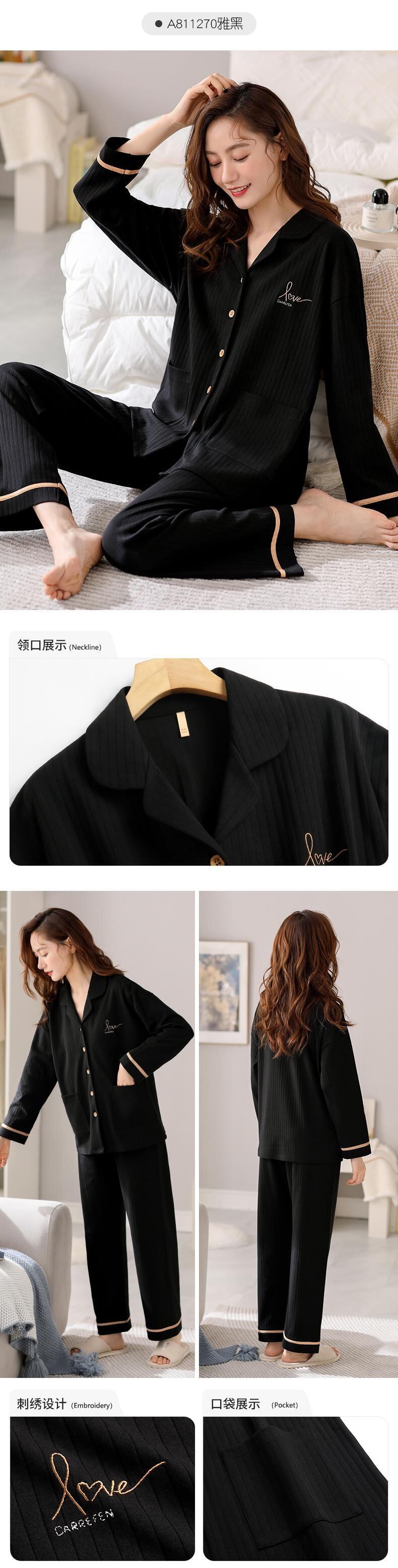 Carrefine パジャマ春秋秋秋の綿長袖夏薄型ホームウェアプラスサイズのスーツ jial90989319753