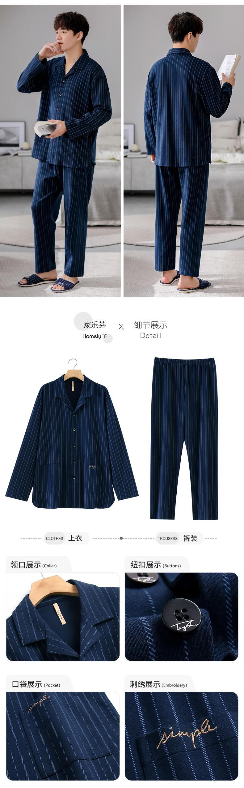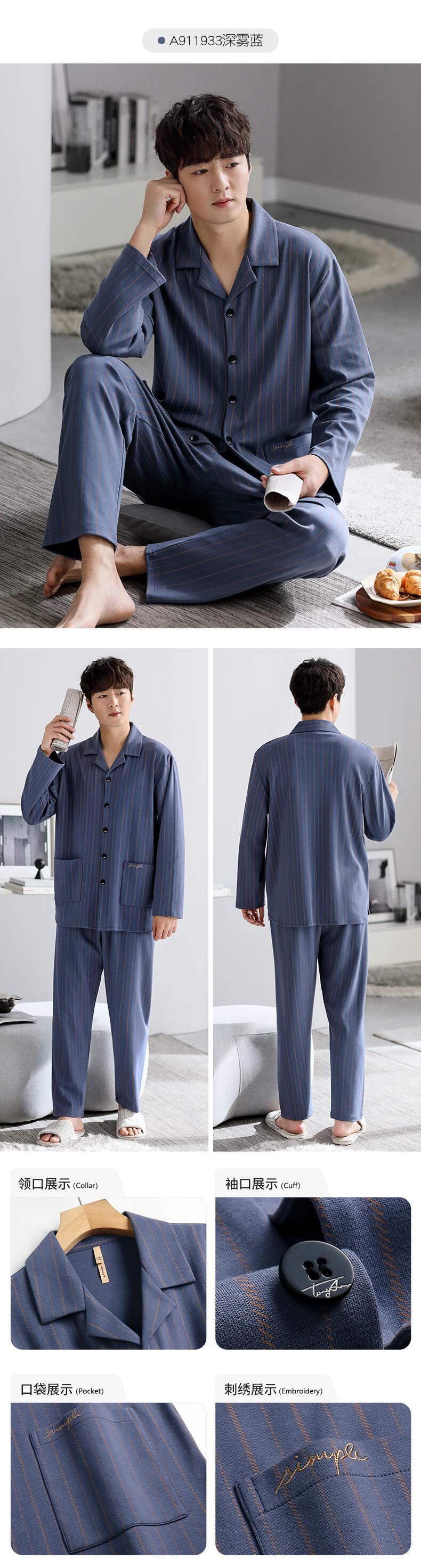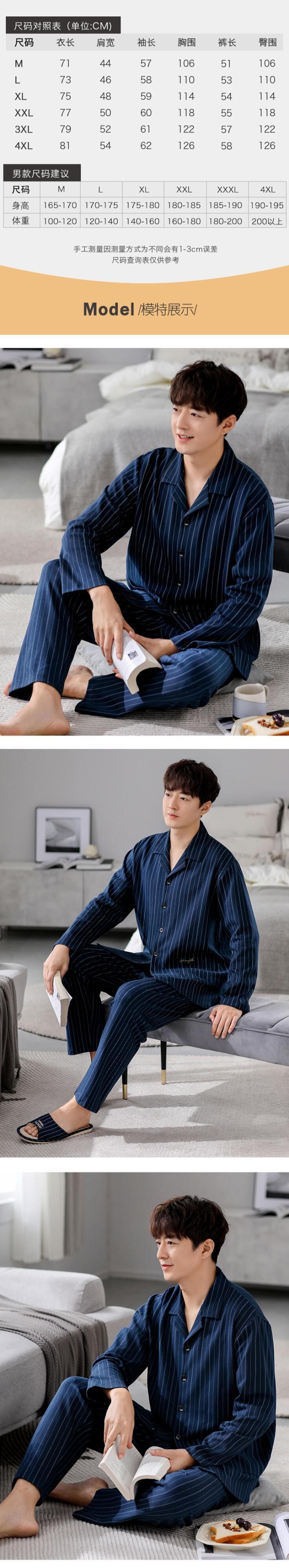 【同スタイルショッピングモール】カルフィーネパジャマメンズ春秋コットン長袖ルームウェアメンズプラスサイズスーツ jial24941605919