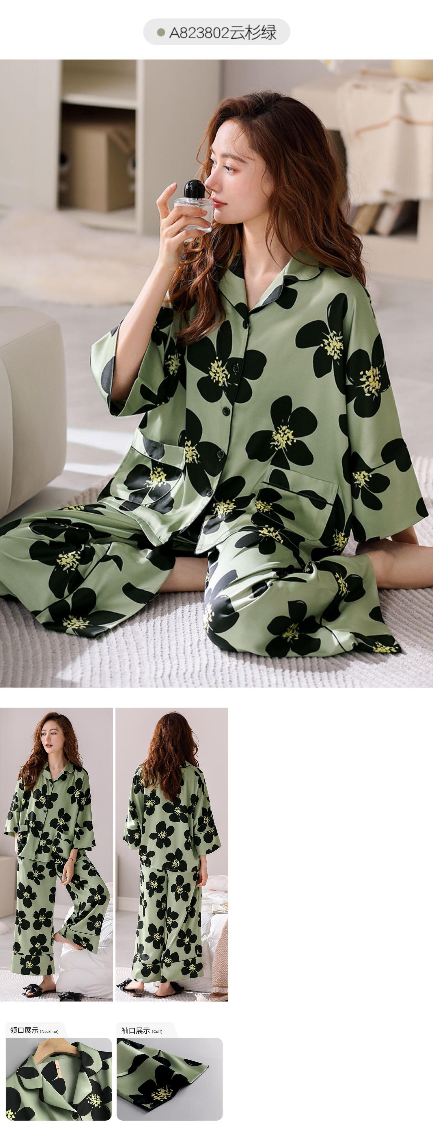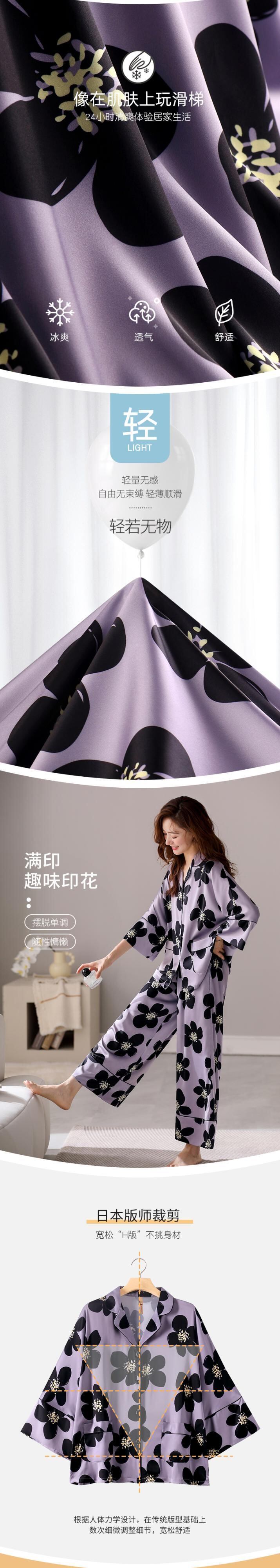 Carrefine パジャマレディース春と秋のシルクアイスシルク長袖ホームウェア女性のシミュレーションシルク薄い夏スーツ jial78434159028