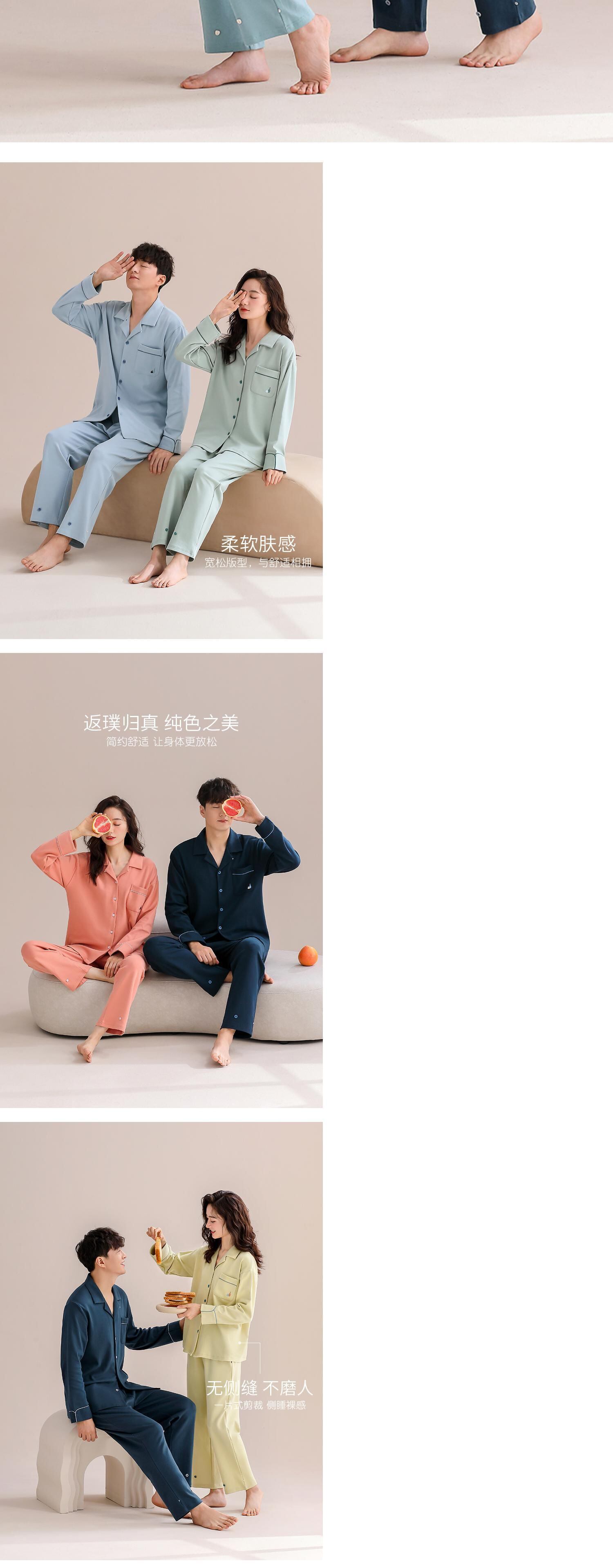 【柔らかさ】カルフィーネ カップル パジャマ 春秋 秋 純綿 長袖 ホームウェア 男女兼用 スーツ jial63899809531