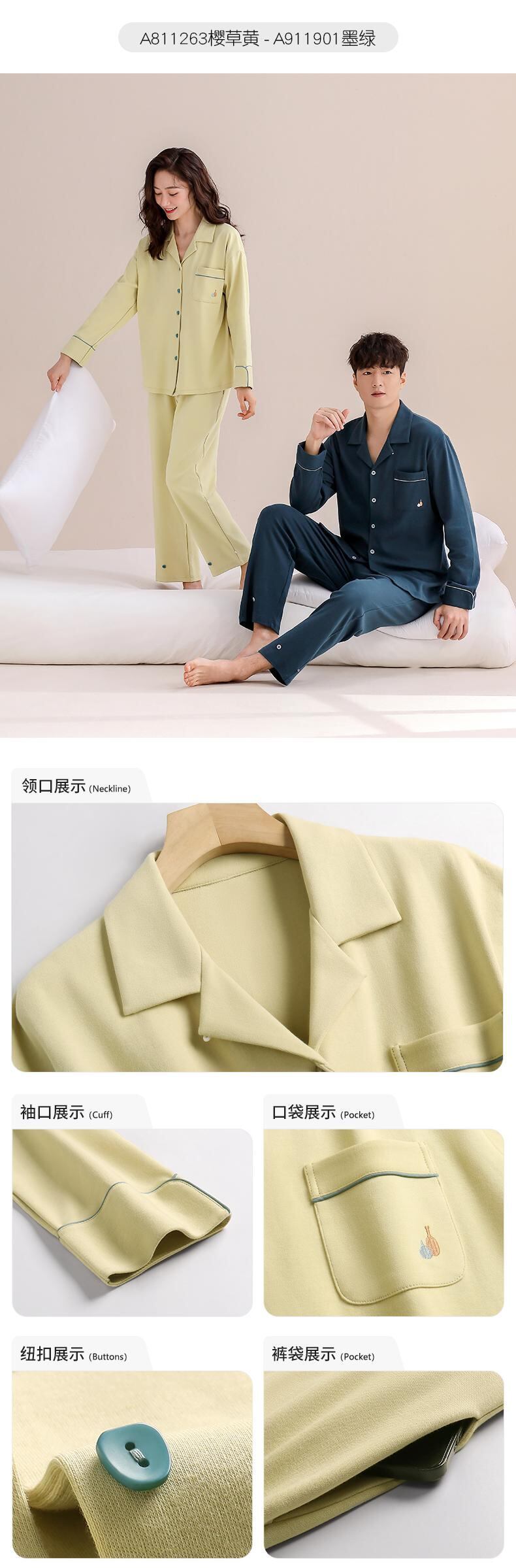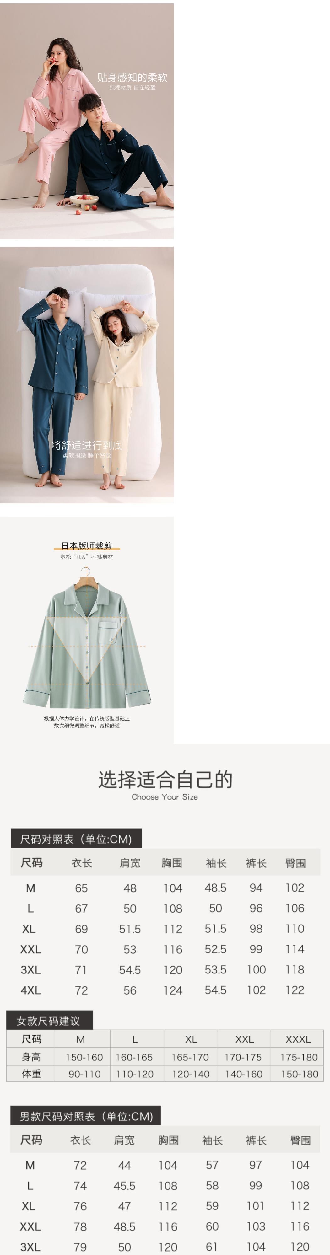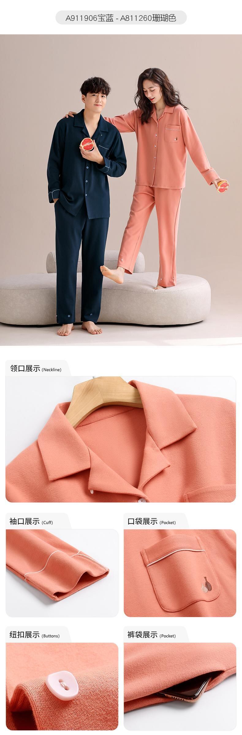 【柔らかさ】カルフィーネ カップル パジャマ 春秋 秋 純綿 長袖 ホームウェア 男女兼用 スーツ jial3674973558