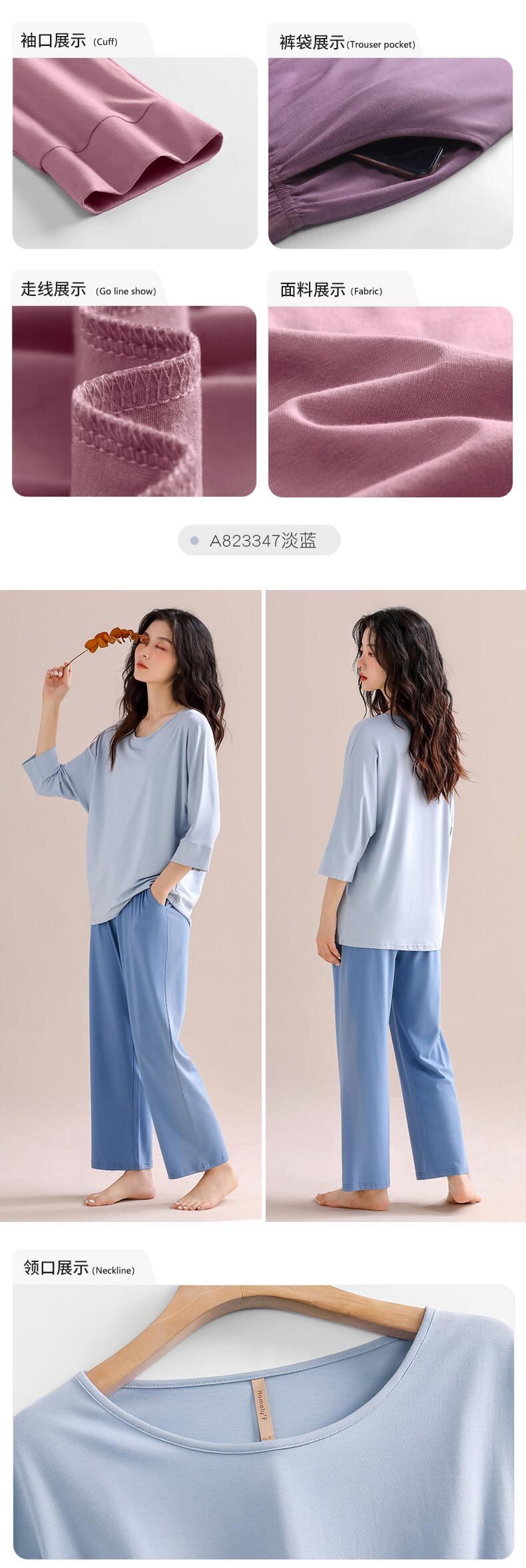 パジャマ 春 秋 秋 モーダル ホームウェア 七分袖 長袖 アイスシルク 薄手 サマースーツ jial15332268702