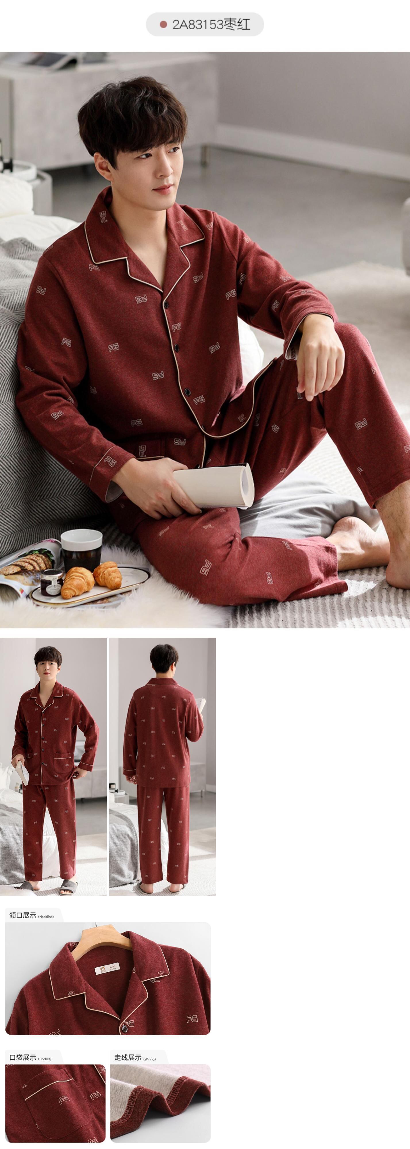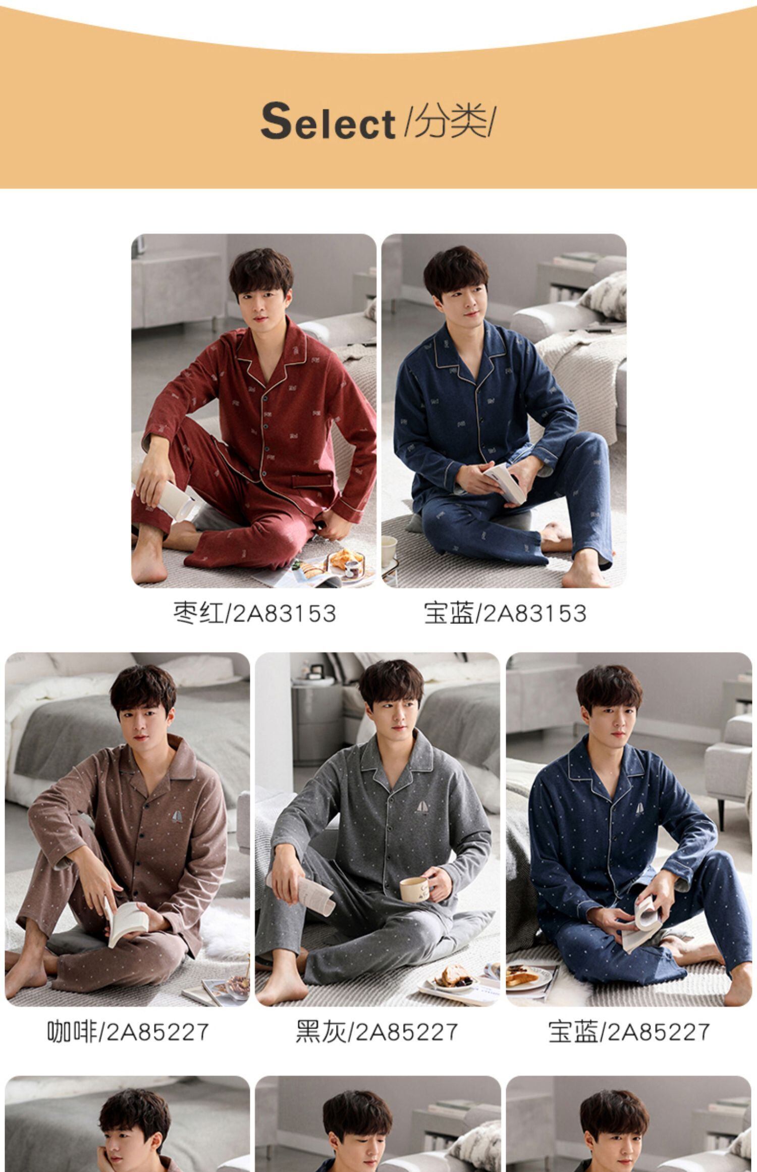 【色綿ヤスリ】ジアレフェンパジャマメンズ春秋コットン長袖ホーム服メンズ増厚スーツ jial30444077913