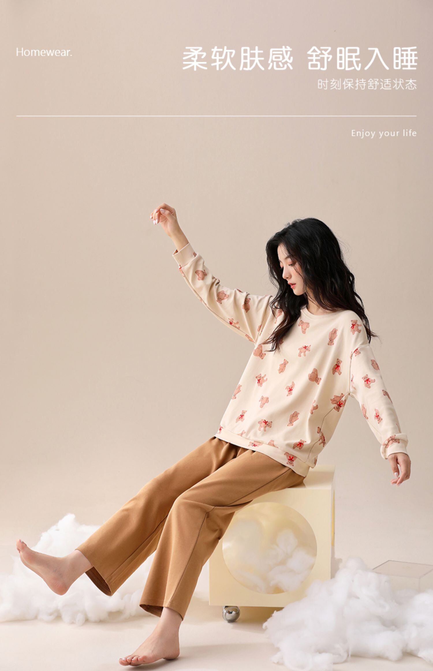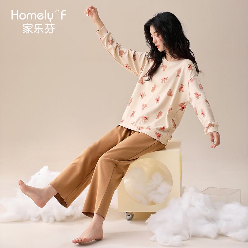 Carrefine パジャマ レディース 春 秋 秋 秋 綿 長袖 ホームウェア アウタースーツ jial37449073050