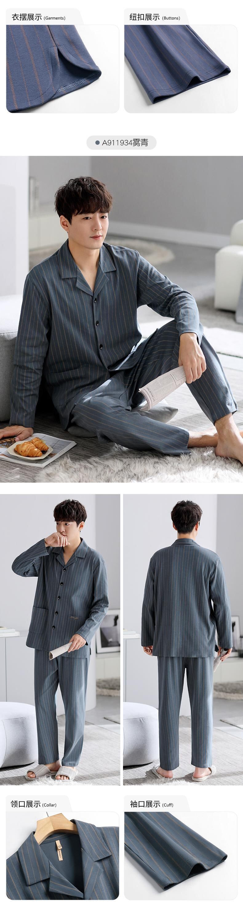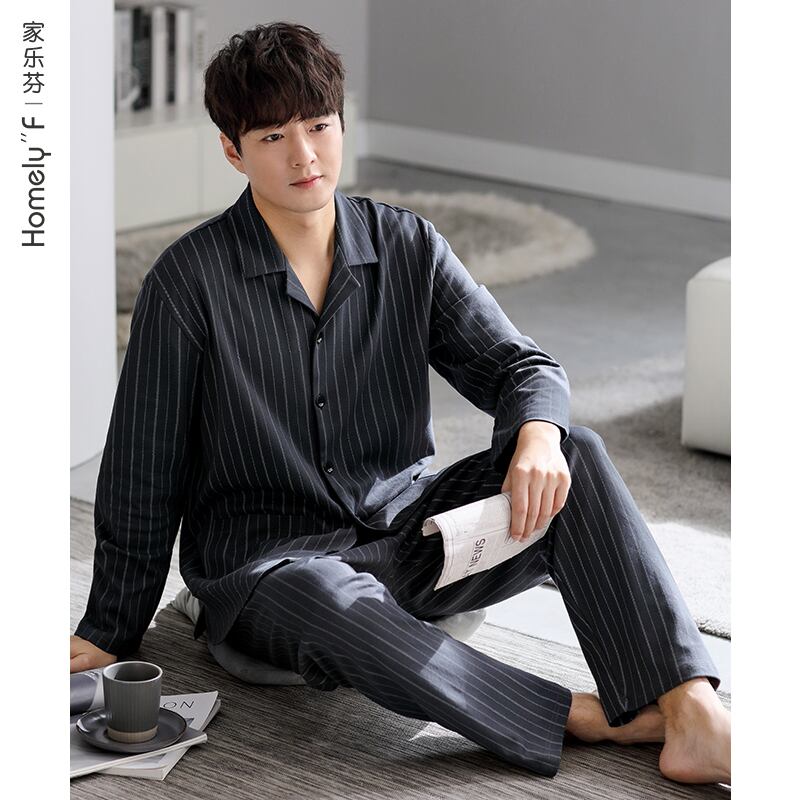 【ショッピングモールも同じスタイル】カルフィーヌパジャマメンズ春秋コットン長袖ルームウェアメンズプラスサイズスーツ jial92889174394