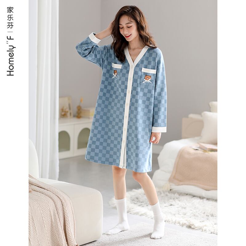 Carrefine ナイトドレス パジャマ 春秋 秋 長袖 綿 薄手 カーディガン ロングシャツ 大きいサイズ jial37734390816