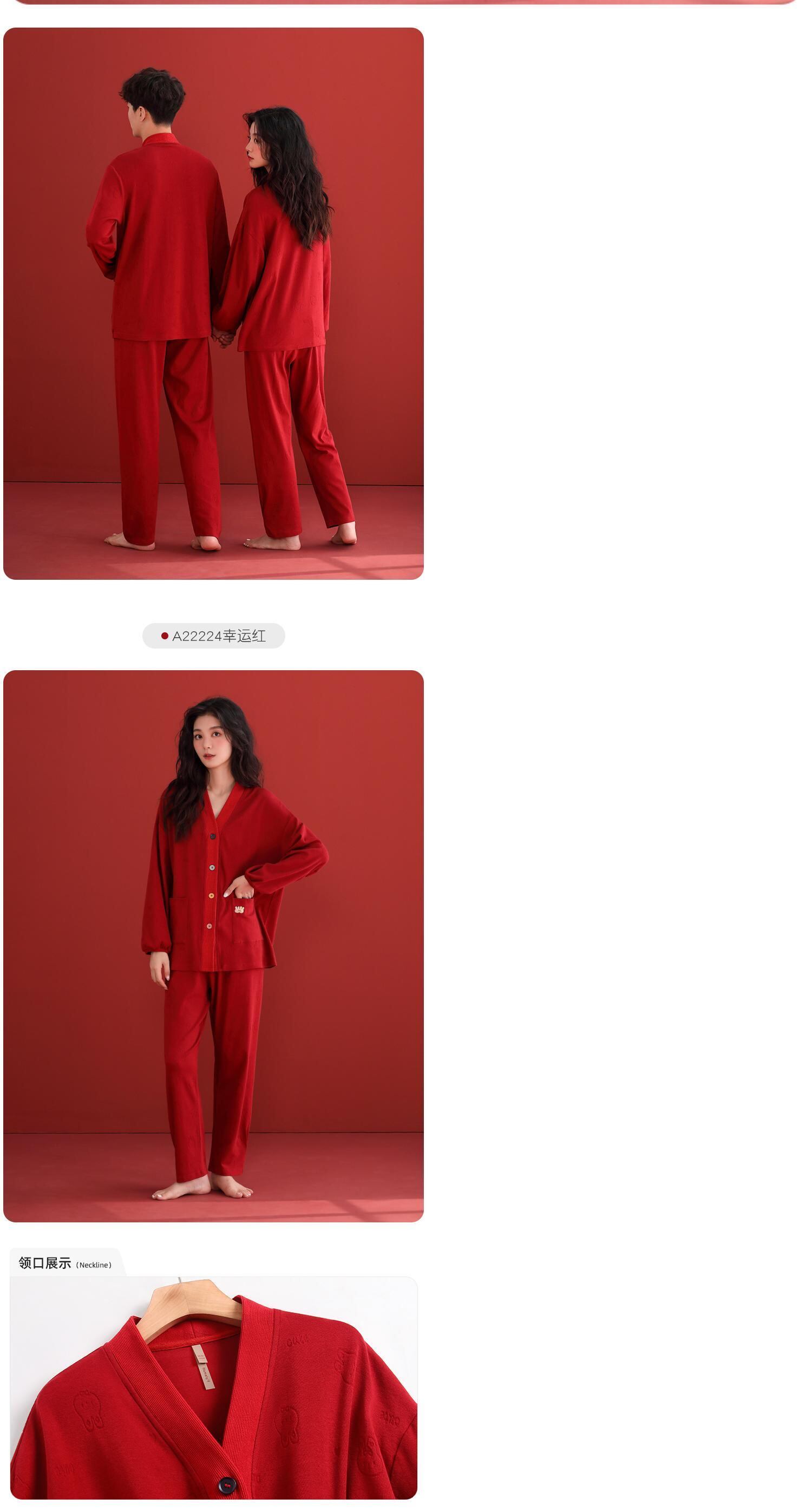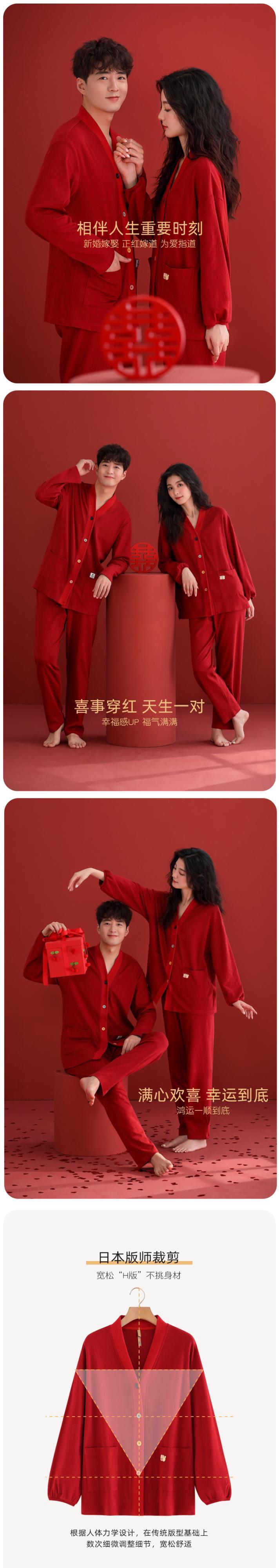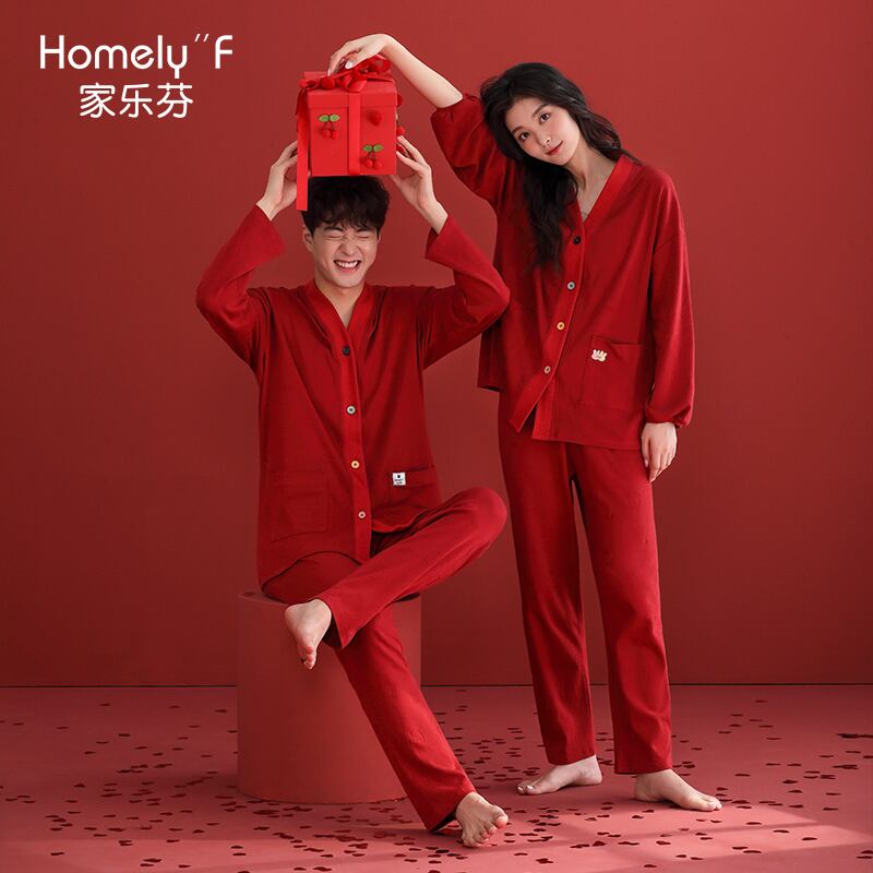 Jialefen カップルパジャマ女性の結婚式新婚家事サービス男性の綿春と秋モデルビッグレッド干支年スーツ jial53449148212