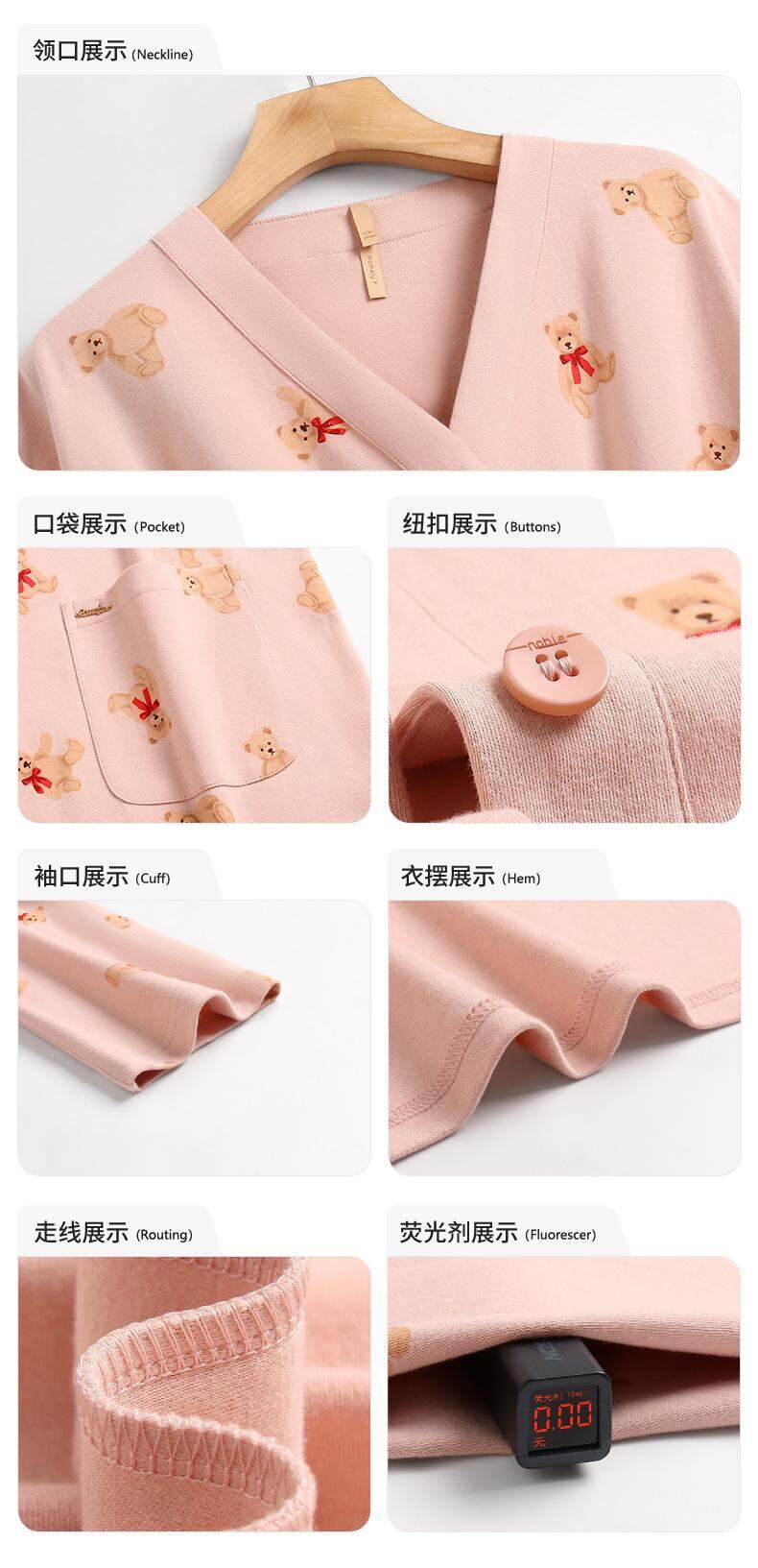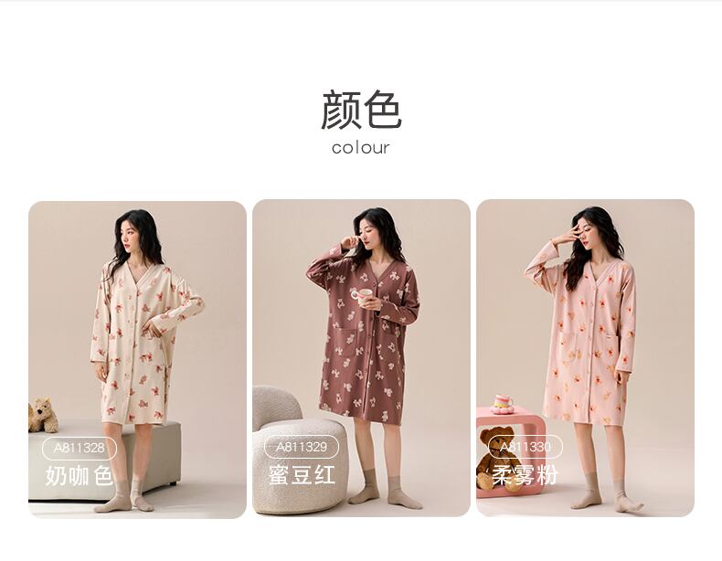 Carrefine ナイトドレス パジャマ 春秋 秋 長袖 綿 薄手 カーディガン ロングシャツ 大きいサイズ jial26307768505