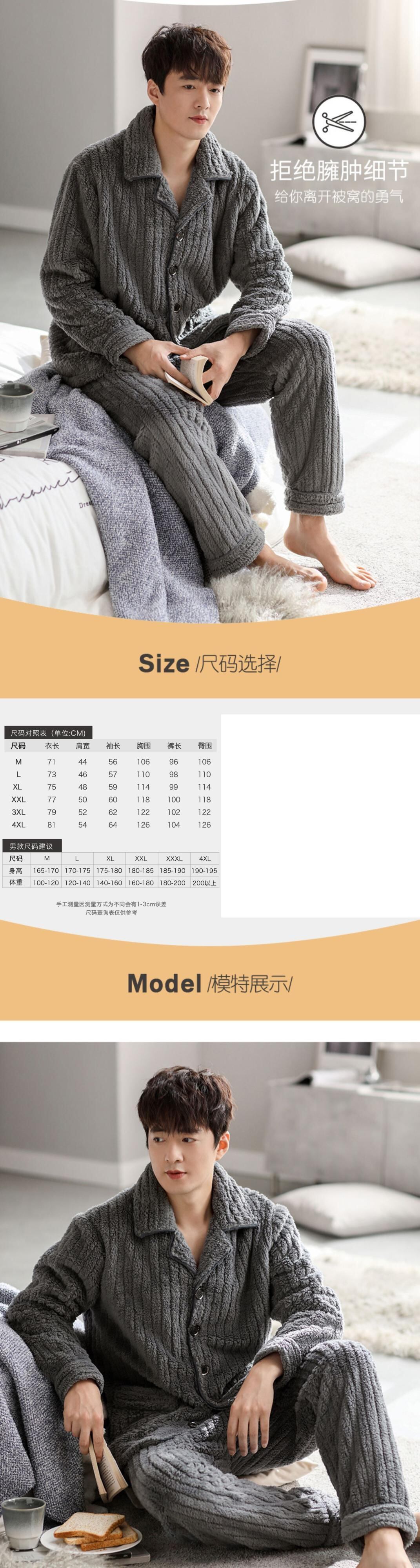 Carrefine メンズ パジャマ 秋冬モデル 冬用フランネル プラス ベルベット 厚手のサンゴ フリース ホームウェア メンズ 冬モデル jial75086372285