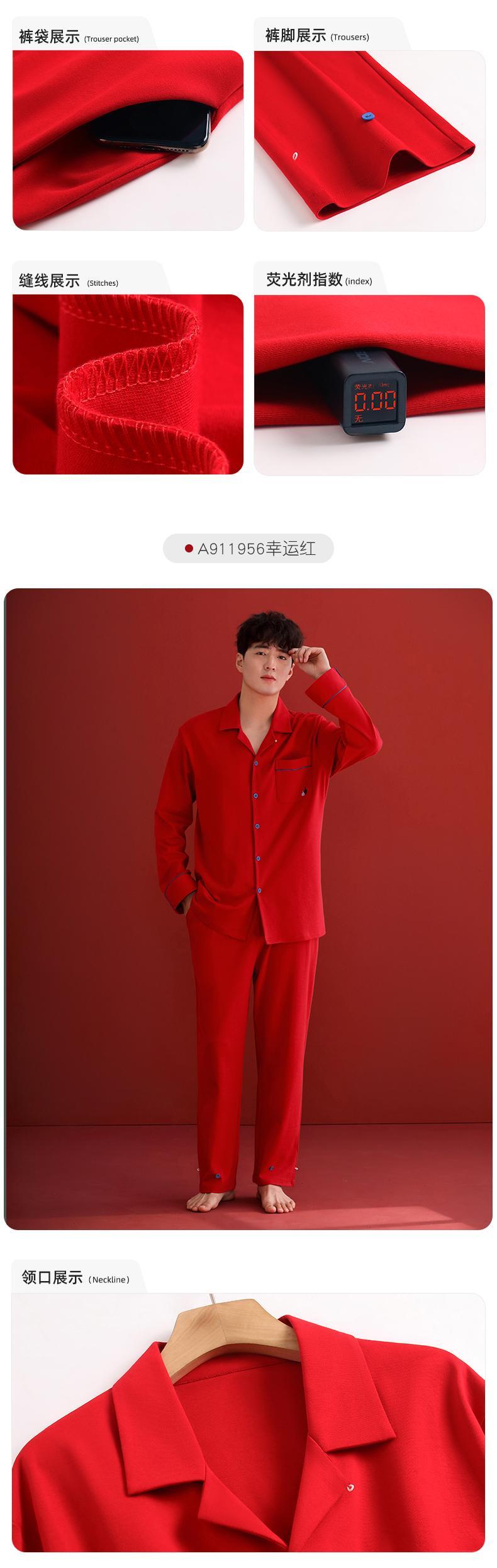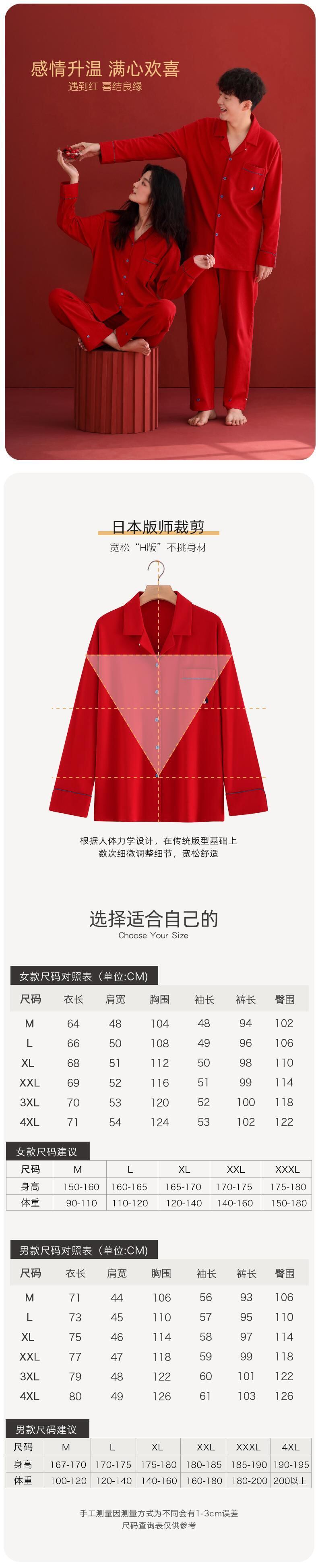 Jialefen カップルパジャマ女性の結婚式新婚家事サービス男性の綿の春と秋モデルビッグレッド干支年スーツ jial10607020777