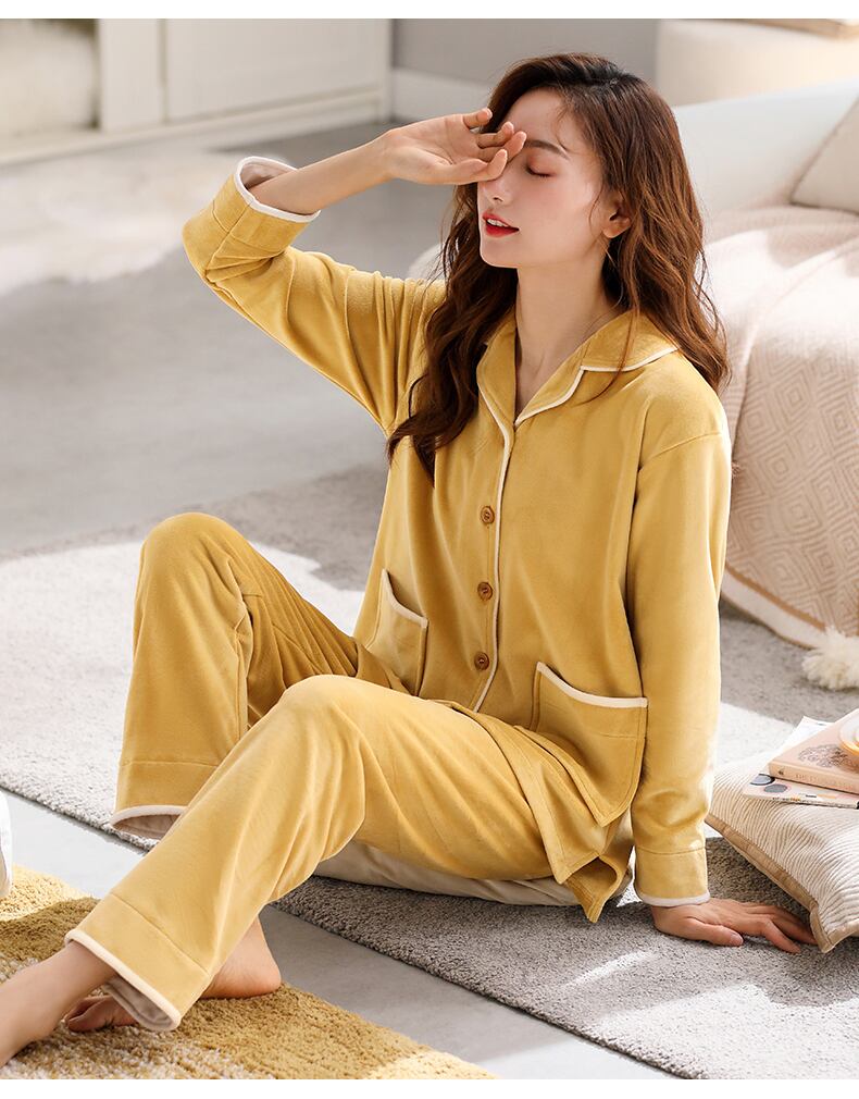 [Island velvet] ジアレフェン パジャマ レディース 秋冬 フランネル プラス ベルベット 厚手のサンゴ フリース ホームウェア jial89440947963