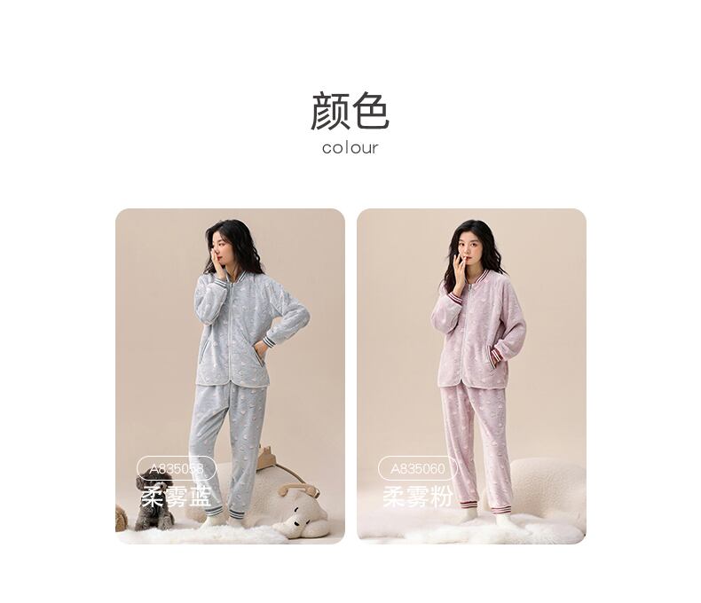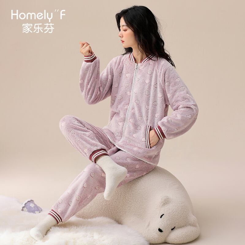ジャレフェンパジャマ女性の冬の秋と冬のフランネルとベルベットの厚いサンゴフリースのホームウェアは、冬に屋外で着用できます jial98636402858