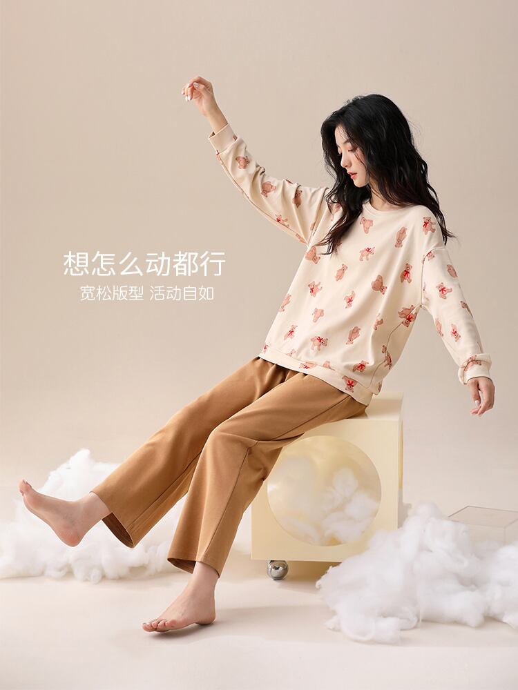 Carrefine パジャマ レディース 春 秋 秋 秋 綿 長袖 ホームウェア アウタースーツ jial33921802199