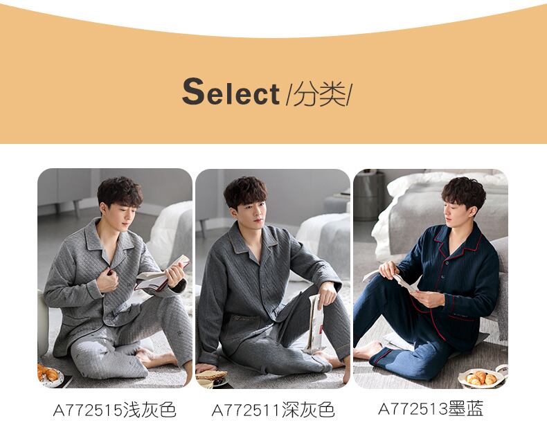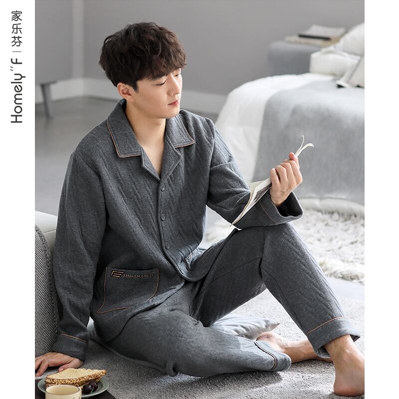 【エアコットン】パジャマ メンズ 春秋モデル 増厚綿 長袖 家庭服 秋冬モデル 冬 キルティング 中間着 jial6492748333