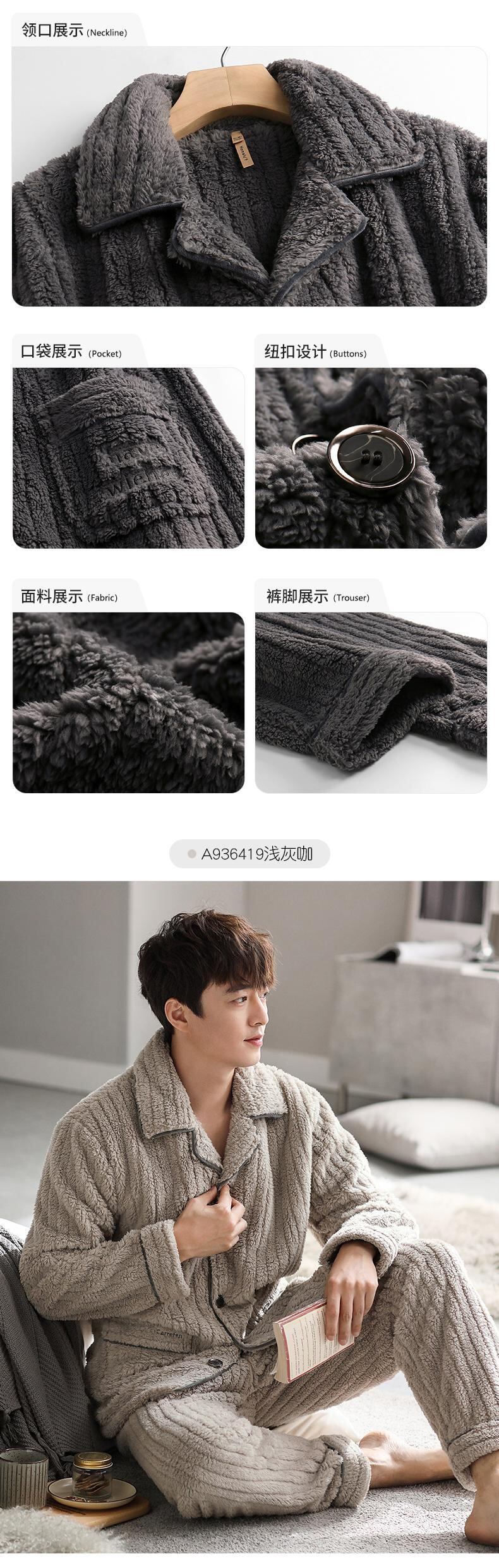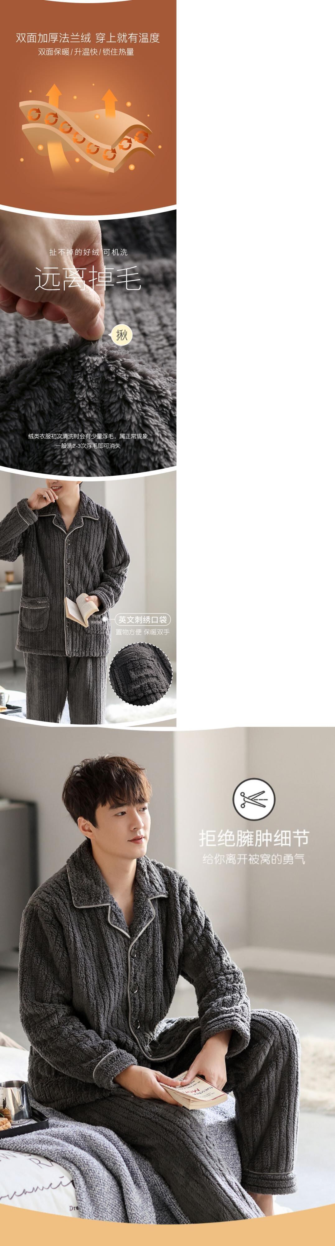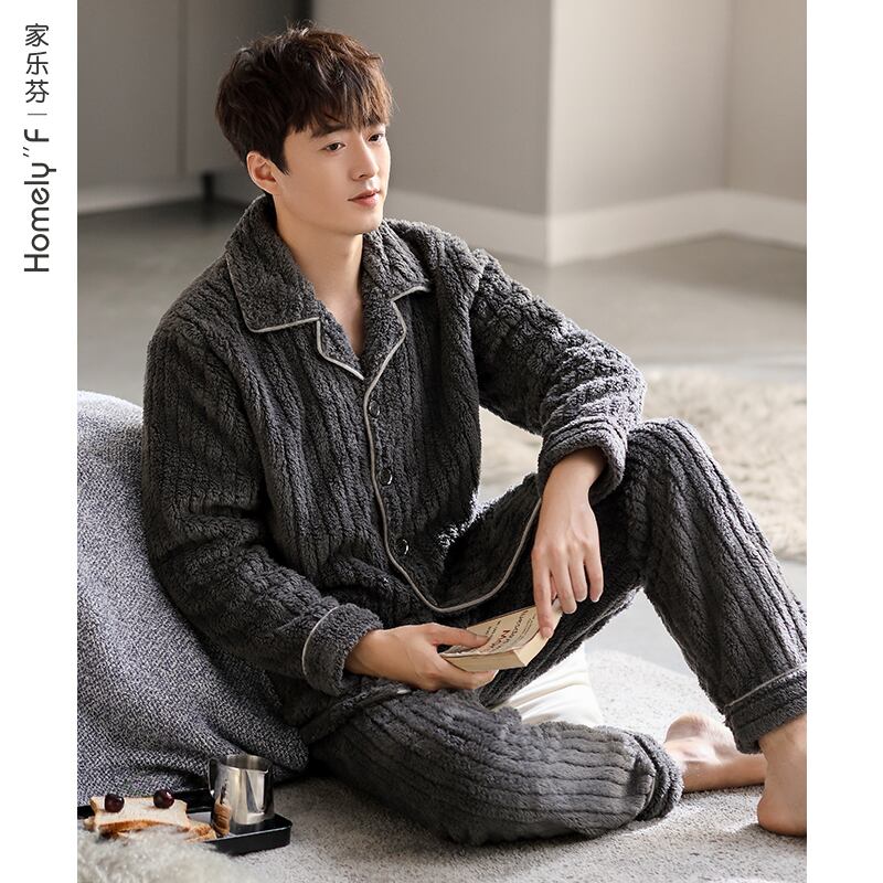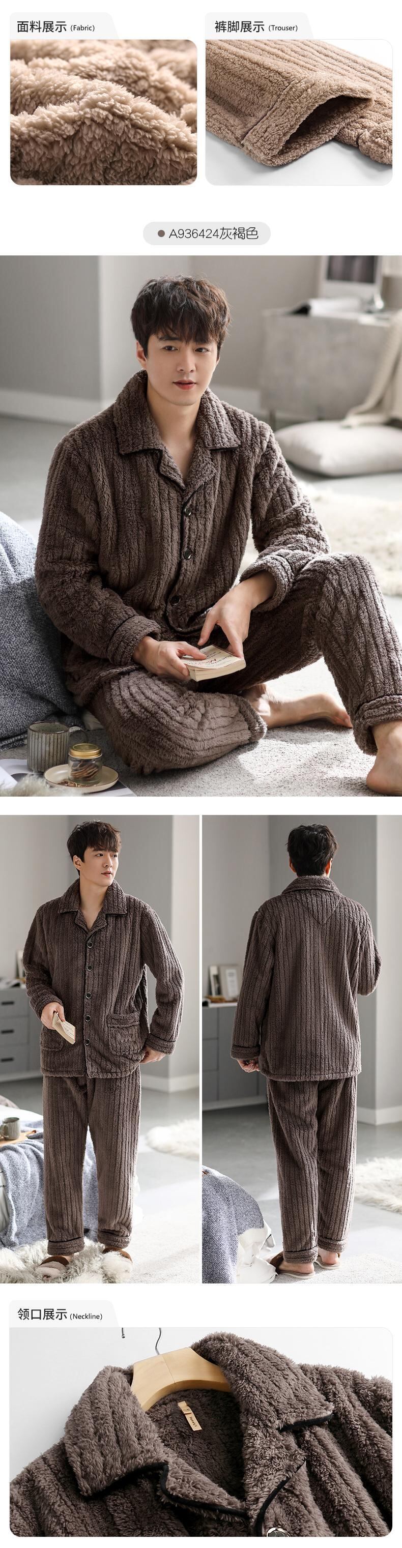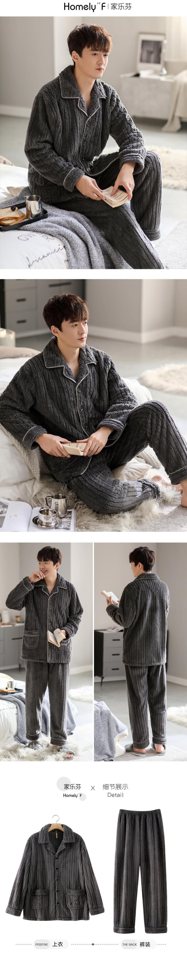 Carrefine メンズ パジャマ 秋冬モデル 冬用フランネル プラス ベルベット 厚手のサンゴ フリース ホームウェア メンズ 冬モデル jial9823938821