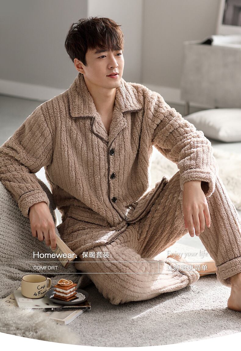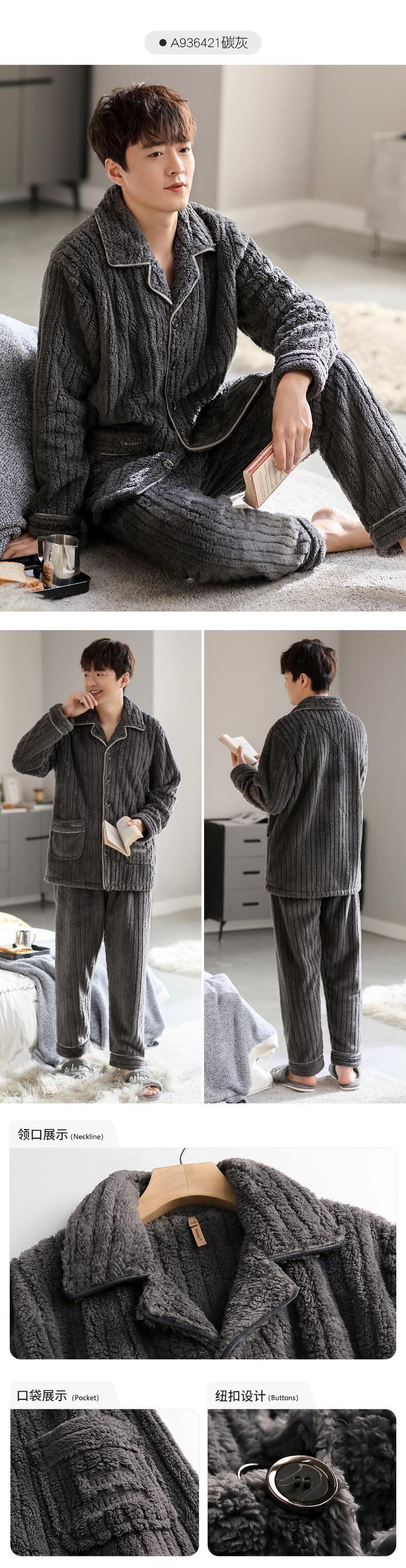 Carrefine メンズ パジャマ 秋冬モデル 冬用フランネル プラス ベルベット 厚手のサンゴ フリース ホームウェア メンズ 冬モデル jial59513656895