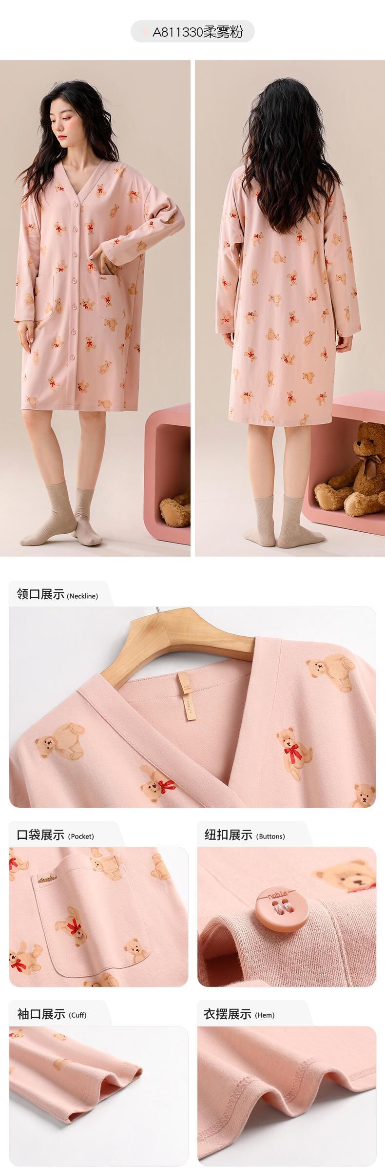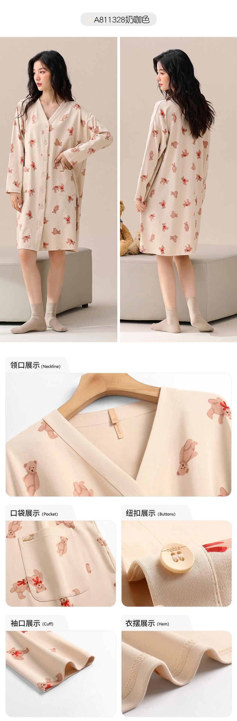 Carrefine 寝間着 レディース パジャマ 春 秋 秋 長袖 綿 薄手 カーディガン ロングシャツ 大きいサイズ 妊婦 jial78015327670