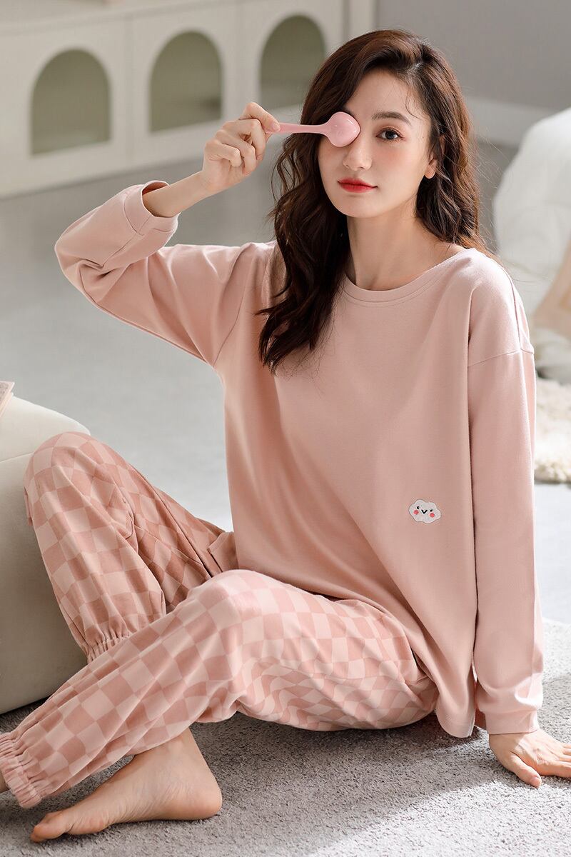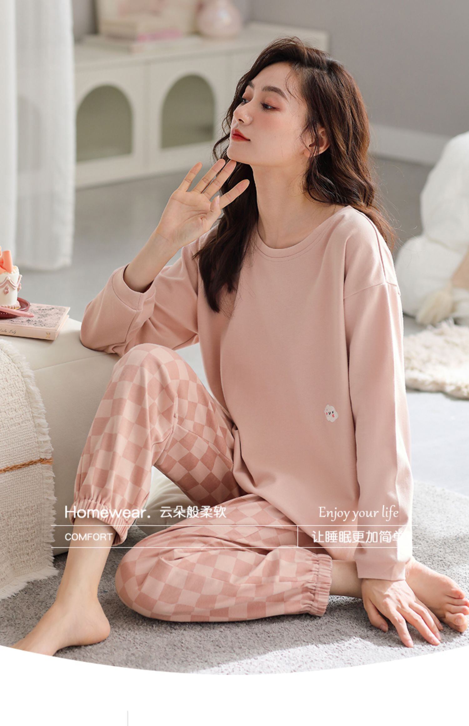 Carrefine パジャマ レディース 春 秋 秋 秋 綿 長袖 ホームウェア アウタースーツ jial65298050231