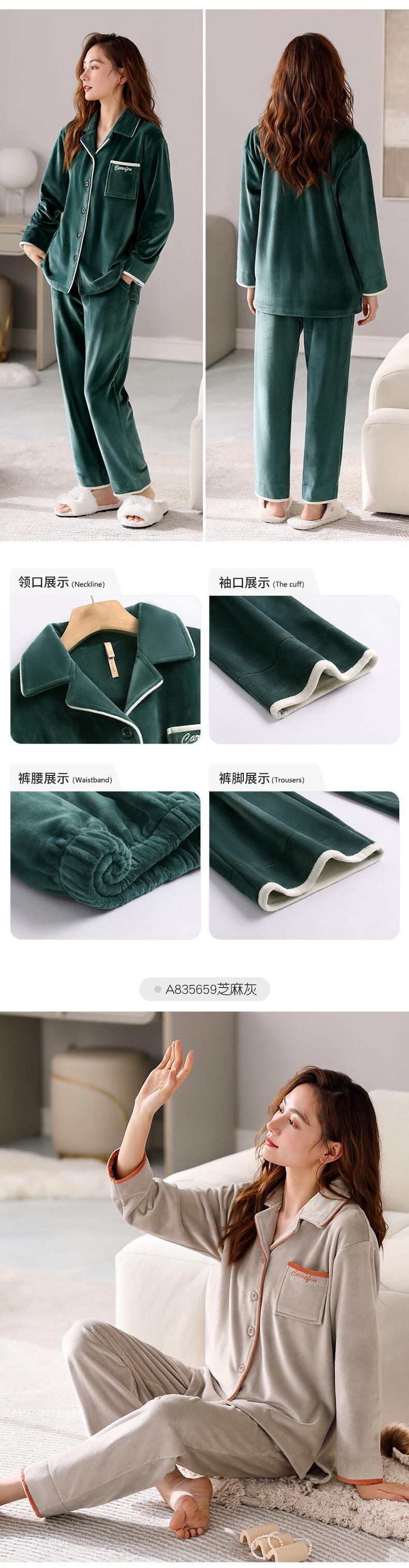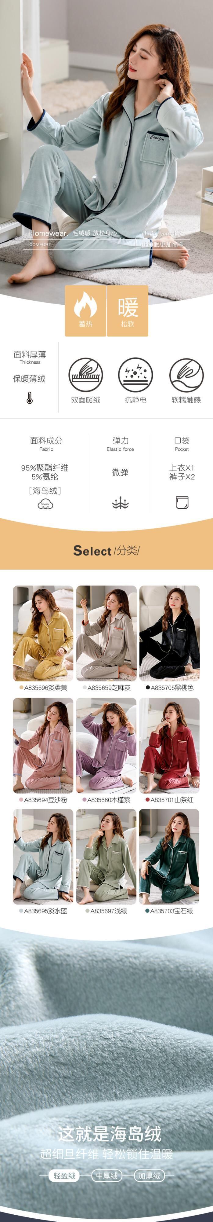 [Island velvet] ジアレフェン パジャマ レディース 秋冬 フランネル プラス ベルベット 厚手のサンゴ フリース ホームウェア jial56997318287