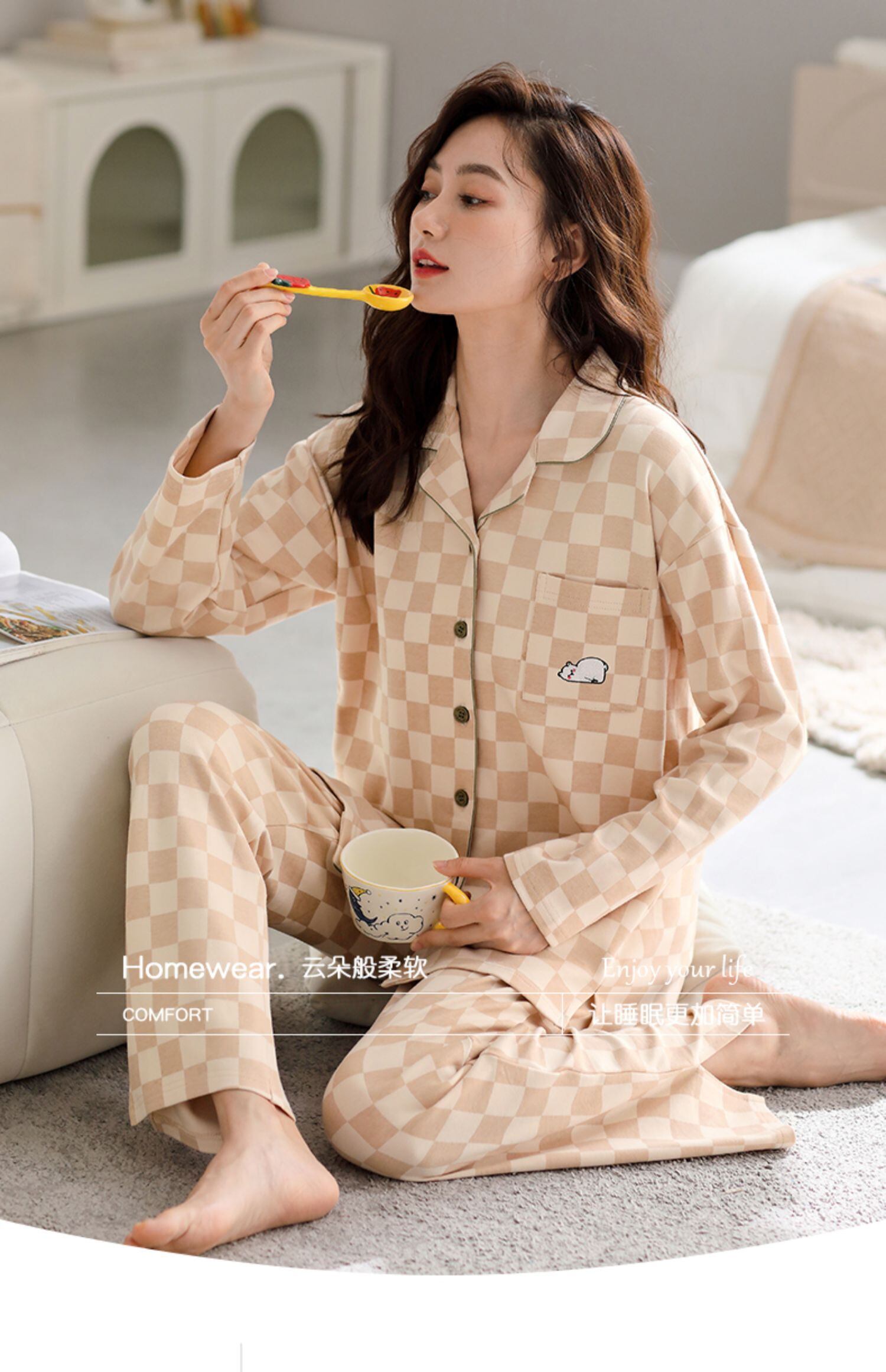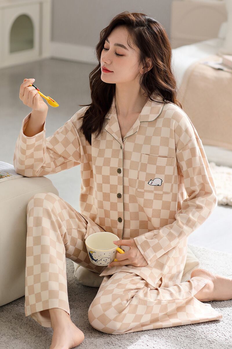 カルフィーネ レディース パジャマ レディース 春秋モデル 秋 綿 長袖 部屋着 秋 秋冬 大きいサイズ スーツ jial62457089532
