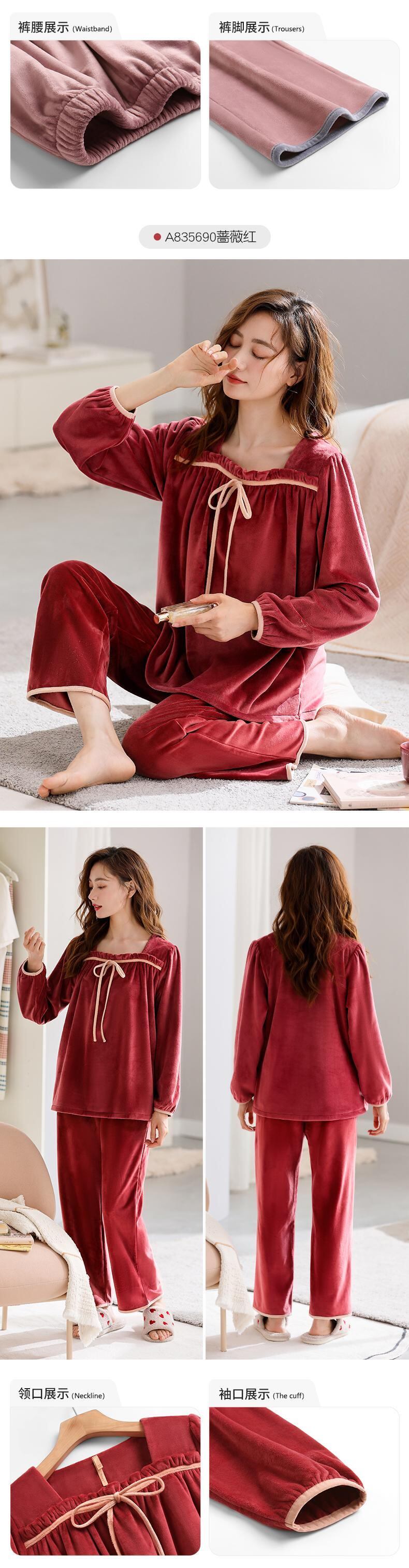 [Island velvet] ジアレフェン パジャマ レディース 秋冬 フランネル プラス ベルベット 厚手のサンゴ フリース ホームウェア jial99147913595