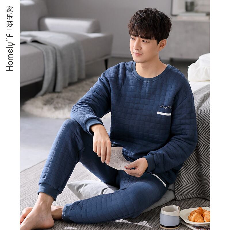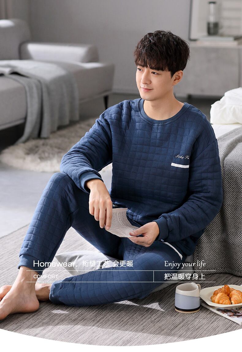 【エアコットン】パジャマ メンズ 春秋モデル 増厚綿 長袖 家庭服 秋冬モデル 冬 キルティング 中間着 jial82297742716