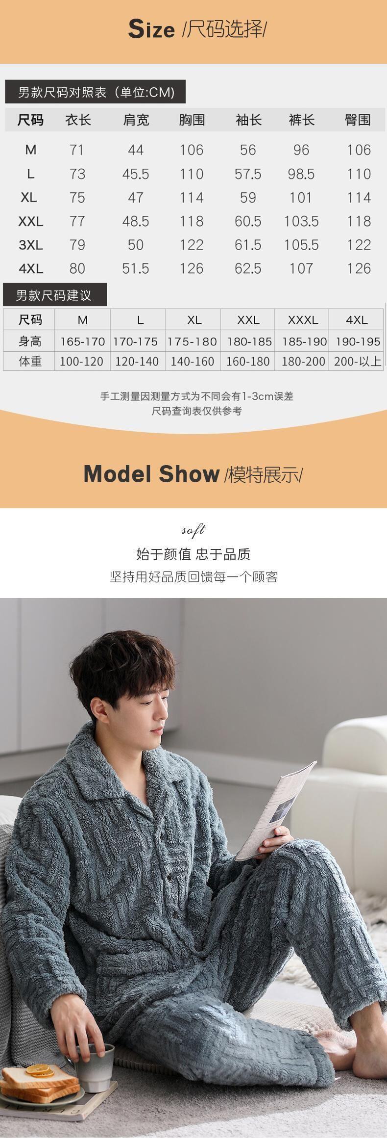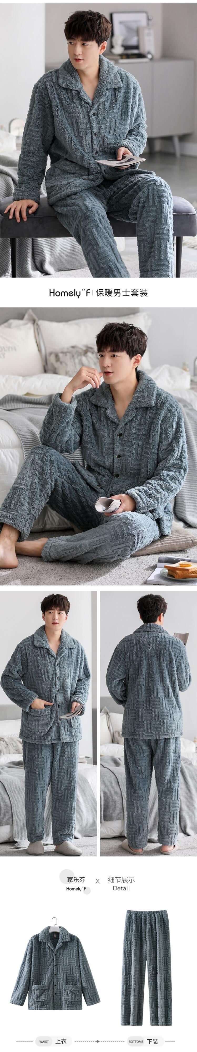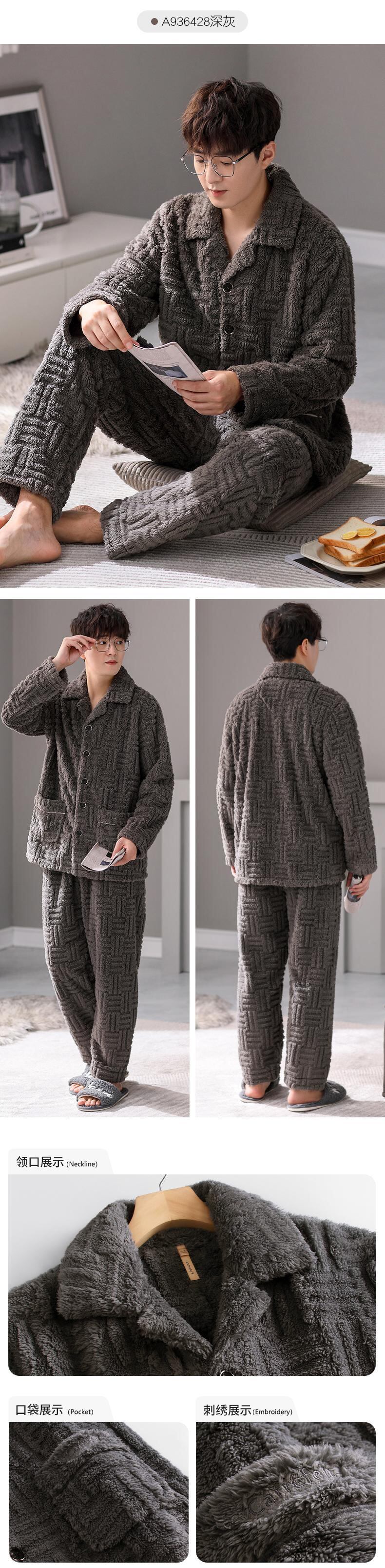 Carrefine メンズ パジャマ 秋冬モデル 冬用フランネル プラス ベルベット 厚手のサンゴ フリース ホームウェア メンズ 冬モデル jial53492014484
