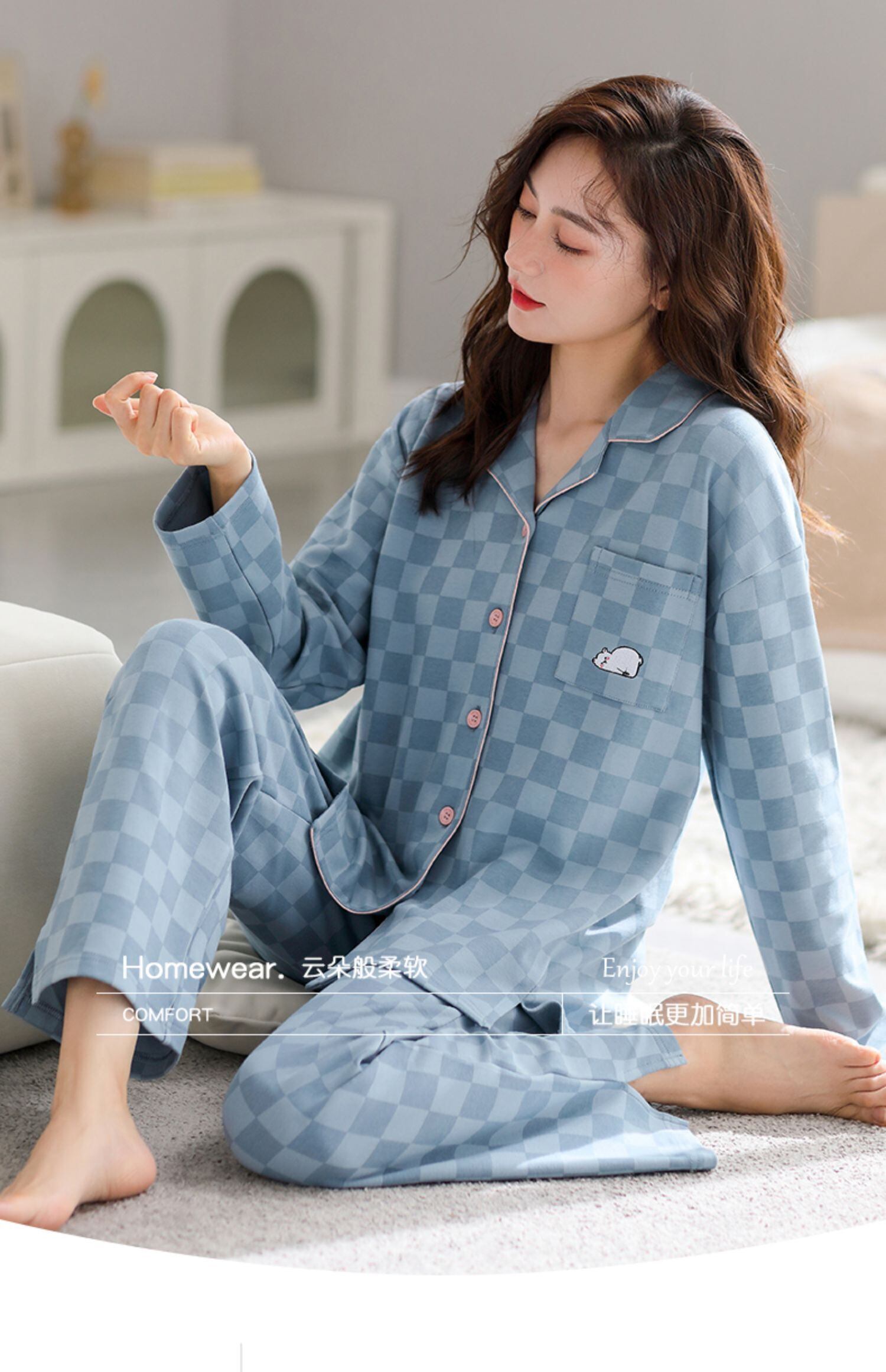 カルフィーネ レディース パジャマ レディース 春秋モデル 秋 綿 長袖 部屋着 秋 秋冬 大きいサイズ スーツ jial85395666176