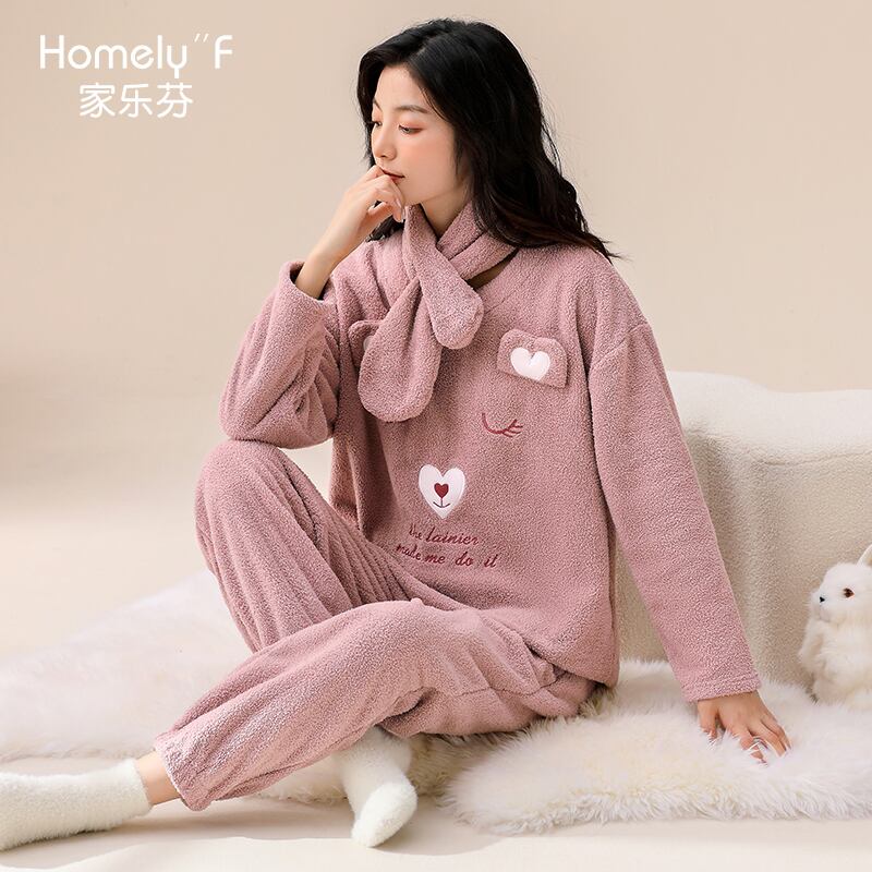 ジャレフェンパジャマ女性の冬の秋と冬のフランネルとベルベットの厚いサンゴフリースのホームウェアは、冬に屋外で着用できます jial39599615724