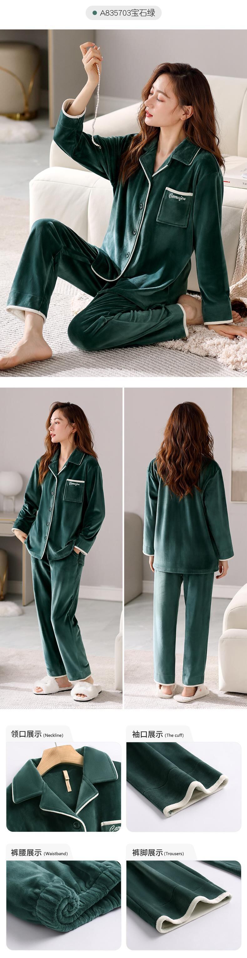 [Island velvet] ジアレフェン パジャマ レディース 秋冬 フランネル プラス ベルベット 厚手のサンゴ フリース ホームウェア jial44536093103