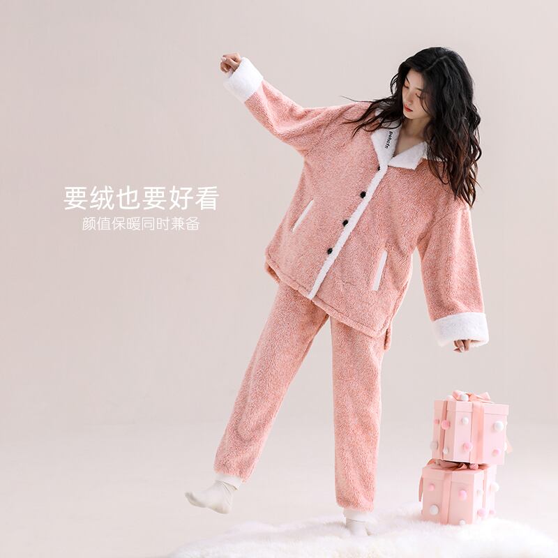 Carrefine パジャマ冬の秋と冬のフランネル プラス ベルベット肥厚サンゴ フリース ホームウェア冬のスーツ jial91445362979