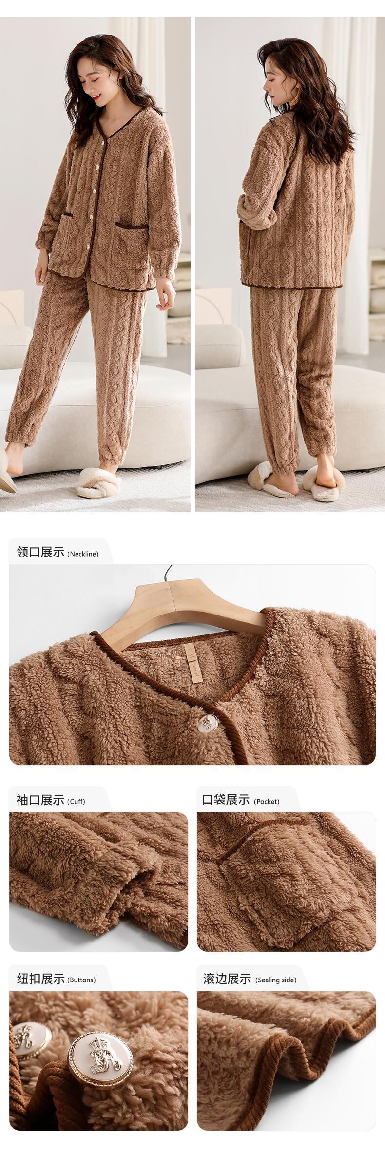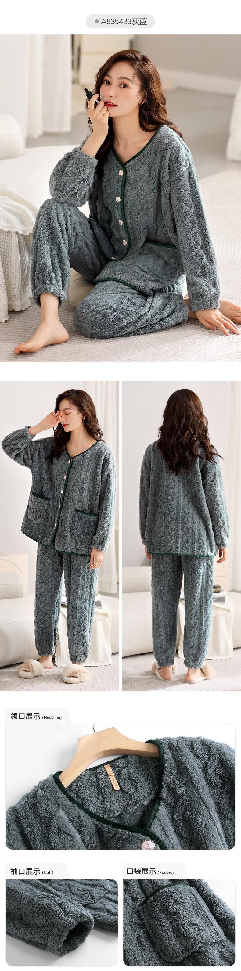 Jiarefen レディース パジャマ冬の女性の秋と冬のフランネル プラス ベルベット厚いサンゴ ベルベット ホーム服冬 jial55106339518