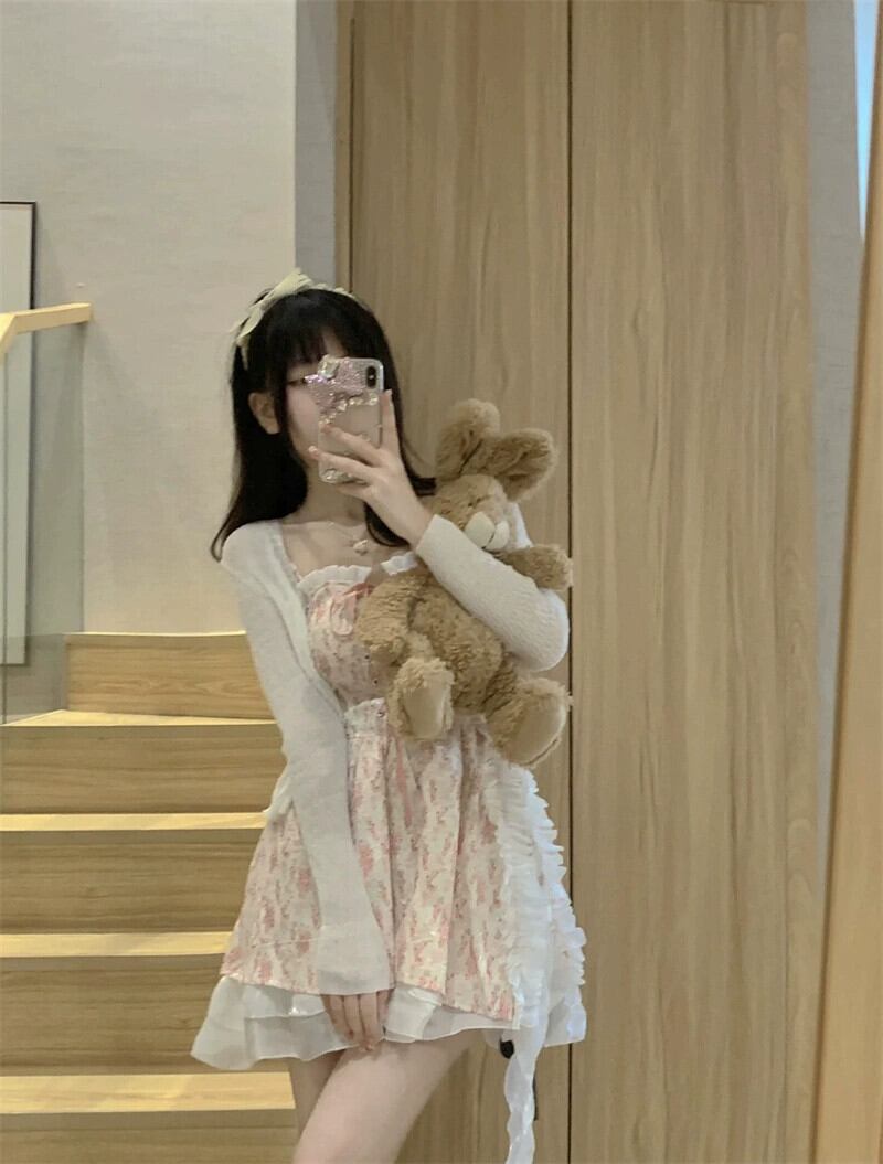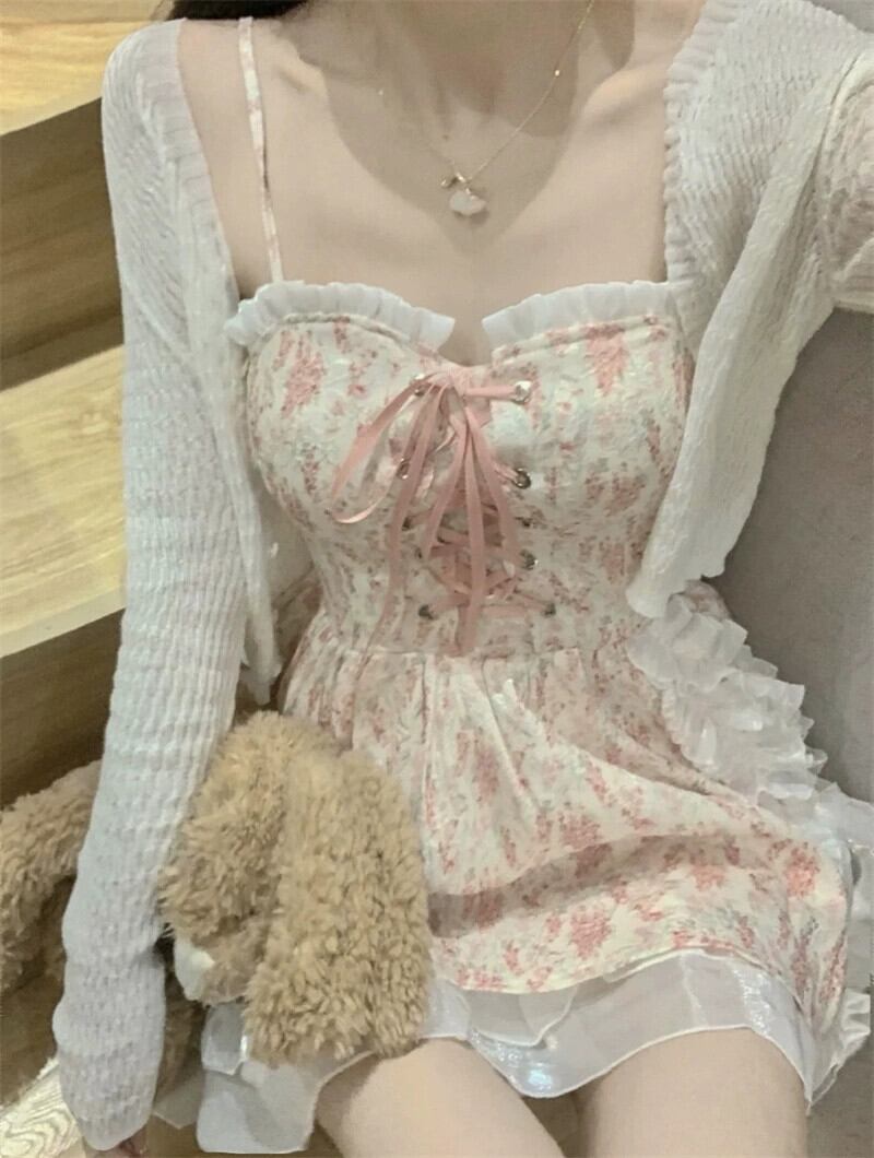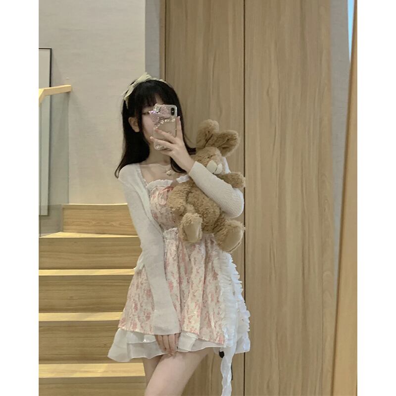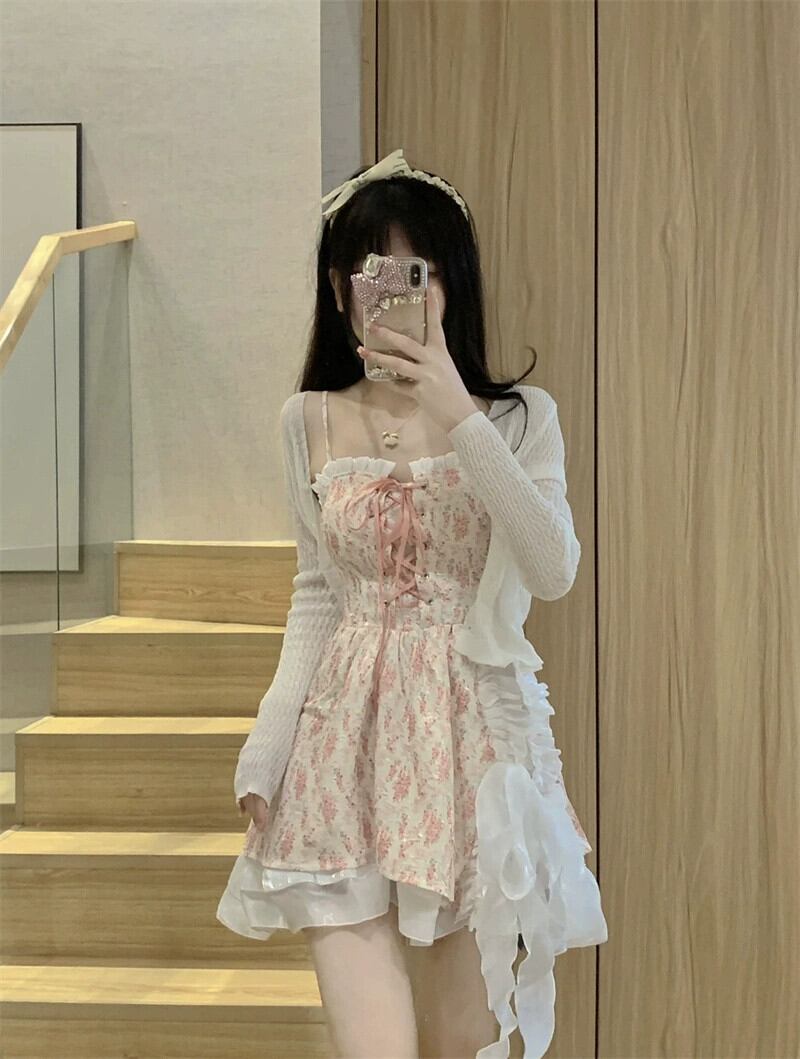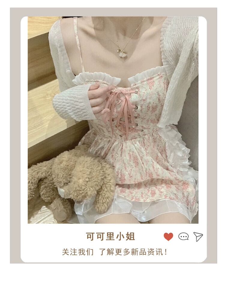 甘い欲望風巾着サスペンダードレス夏 2023 新シリーズ遊び心木耳ステッチ花柄スカート 大人ガーリー スウィート キュート カジュアル サマー 夏物 missk18831915386