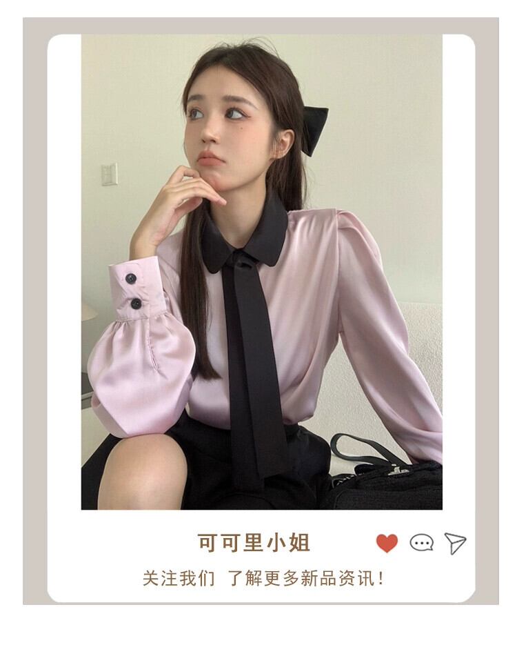 -エンドシャツレディースポロカラーデザインセンスニッチヒットカラー2023年夏新しい気質長袖カーディガントップ ロング サマー 夏物 missk45767479993