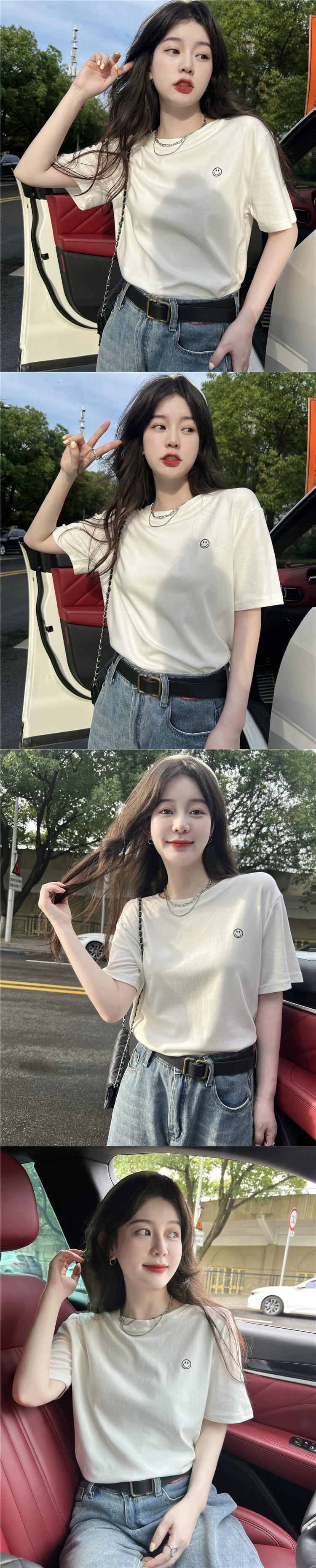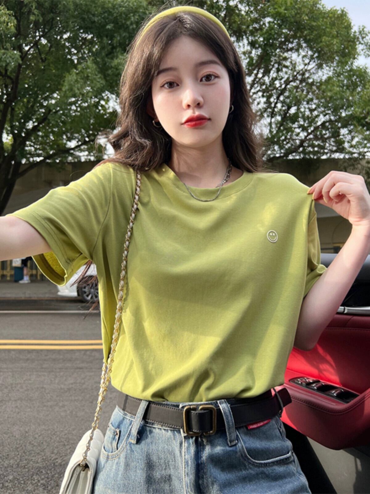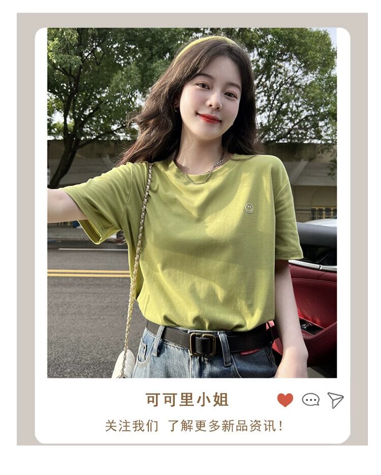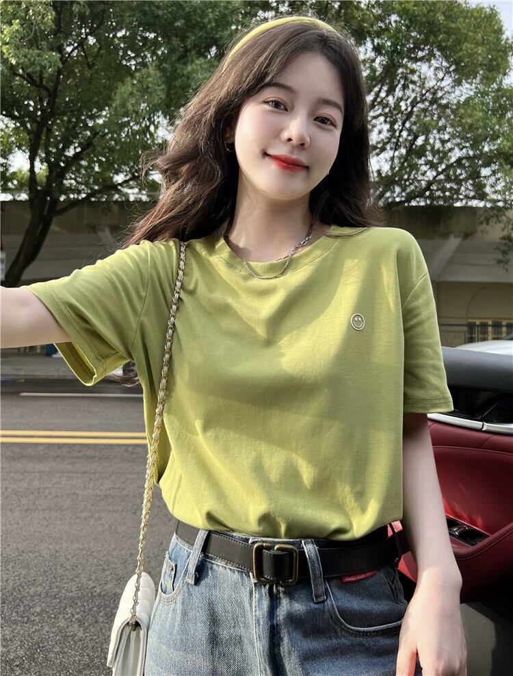 グリーントップレディース夏バージョン2023新しいシンプルなオールマッチベーシックモデルルーズラウンドネック半袖ボトムTシャツ サマー 夏物 Oネック missk92994638226