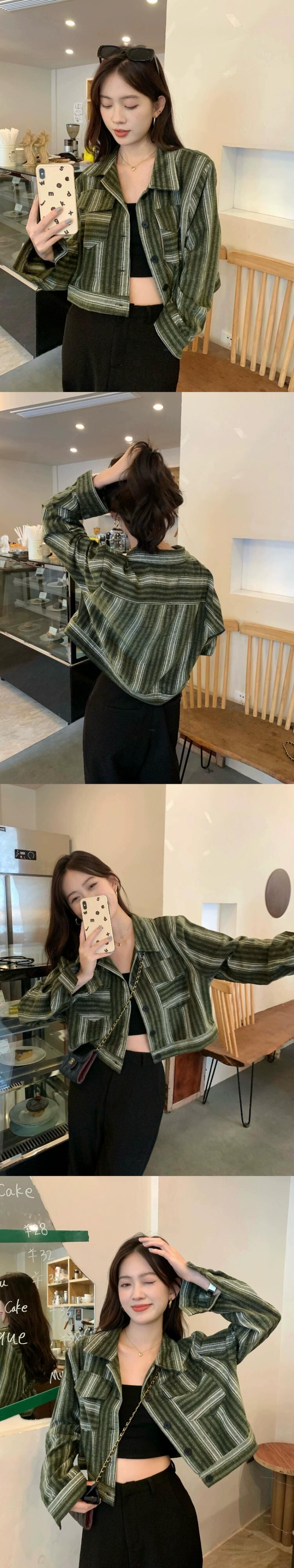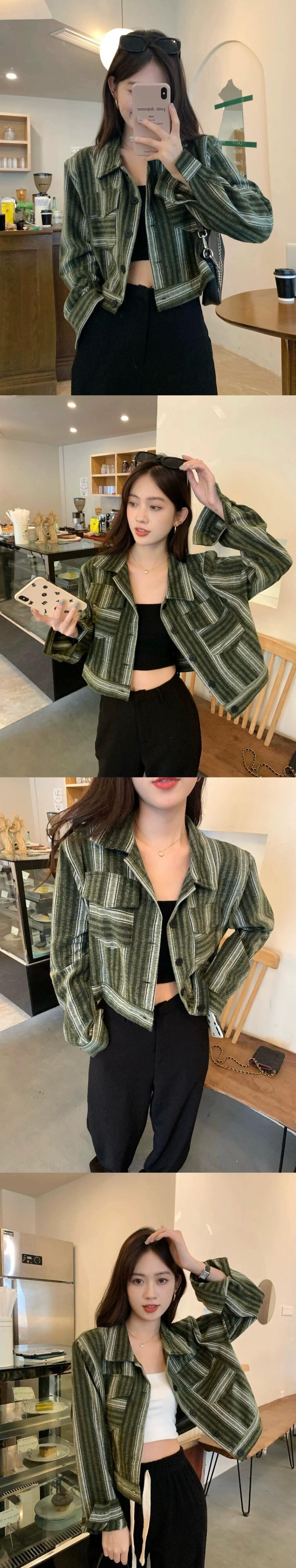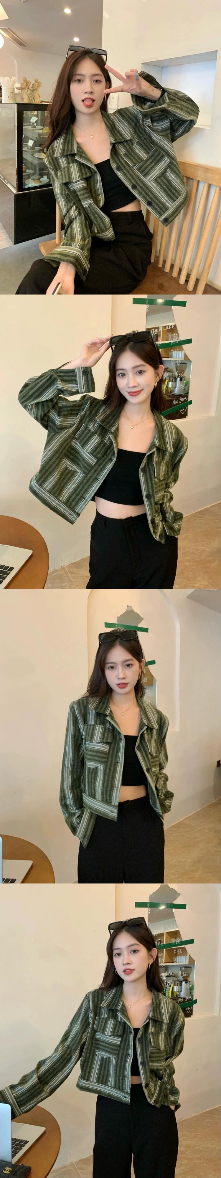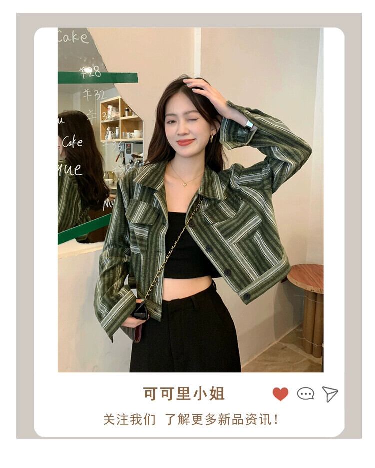 ポロカラーストライプカラーコントラストショート長袖ジャケットレディース秋冬2023新しいデザインセンストップストレンディ ロング オータム 秋物 ウィンター 冬物 missk19511878961