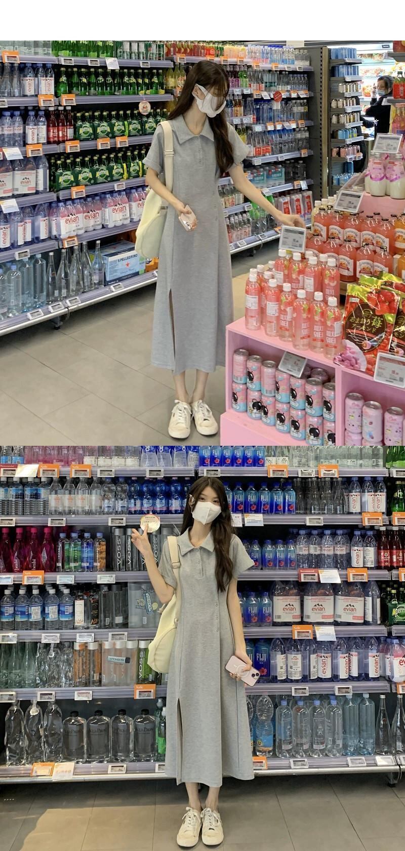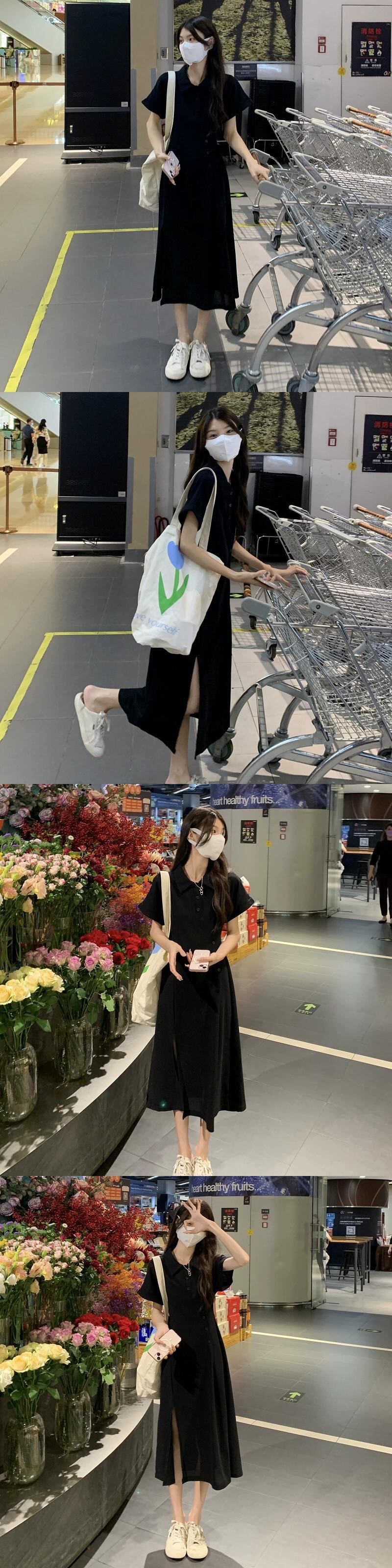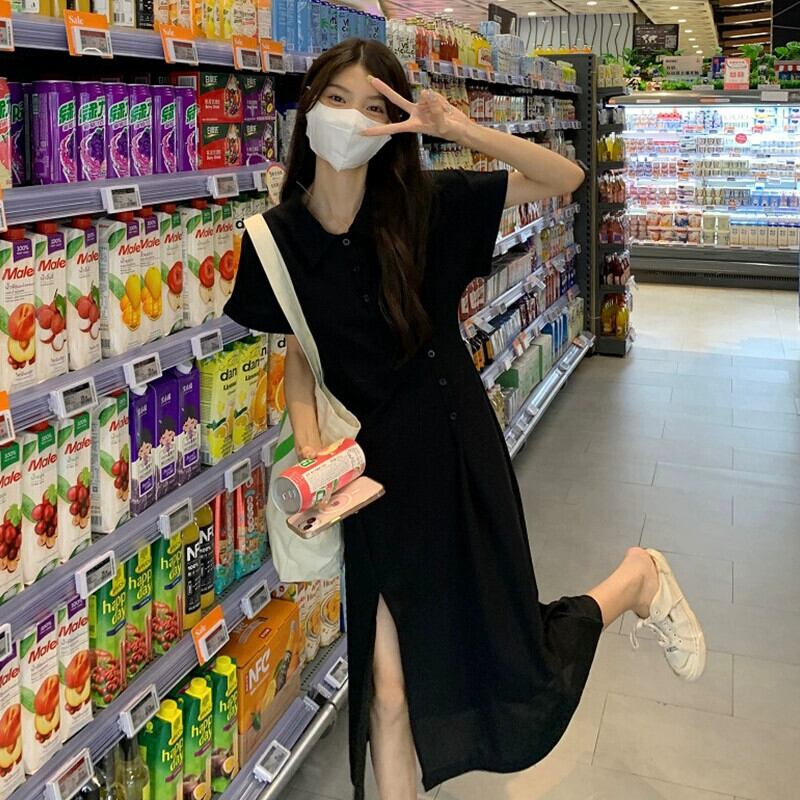 ポロカラースリットドレスレディース2023夏新作ウエスト痩身ミドル丈冷風半袖Aラインスカート サマー 夏物 missk74193639214