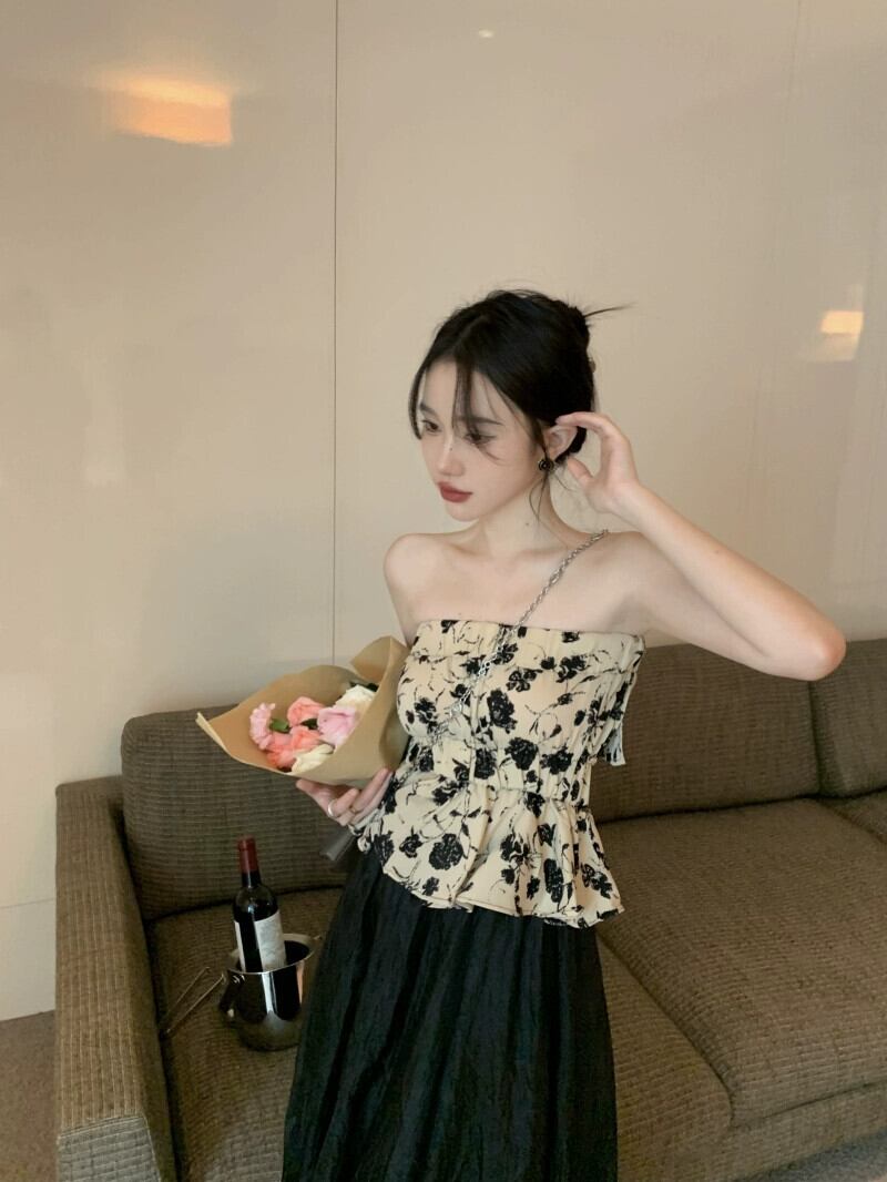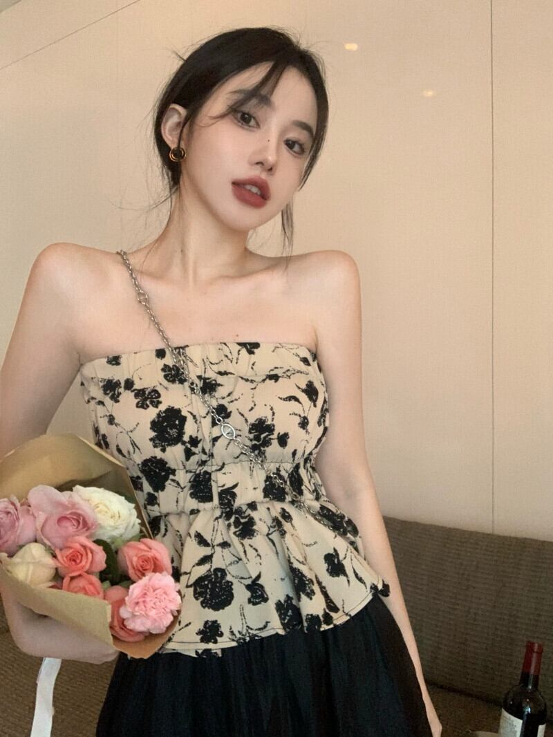 ホットなデザインセンスの花柄キャミソール夏の新しい純粋な欲望ニッチシックなショートセクションチューブトップ女性のトップ サマー 夏物 ピュア missk69699628716