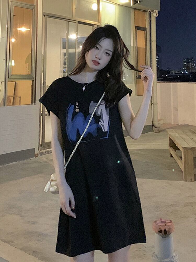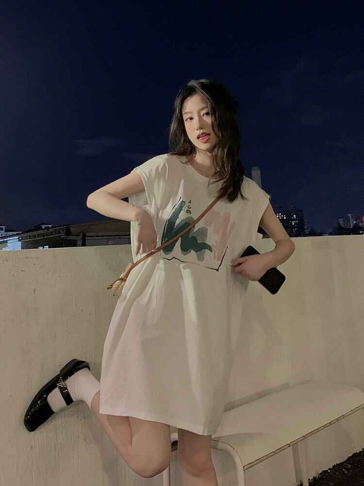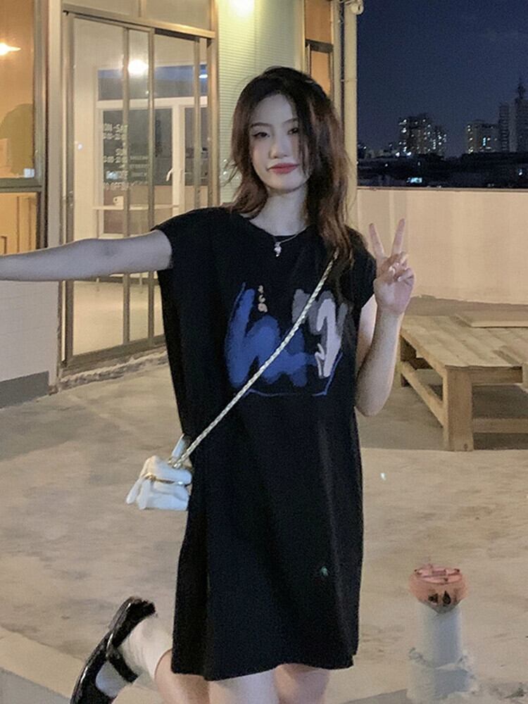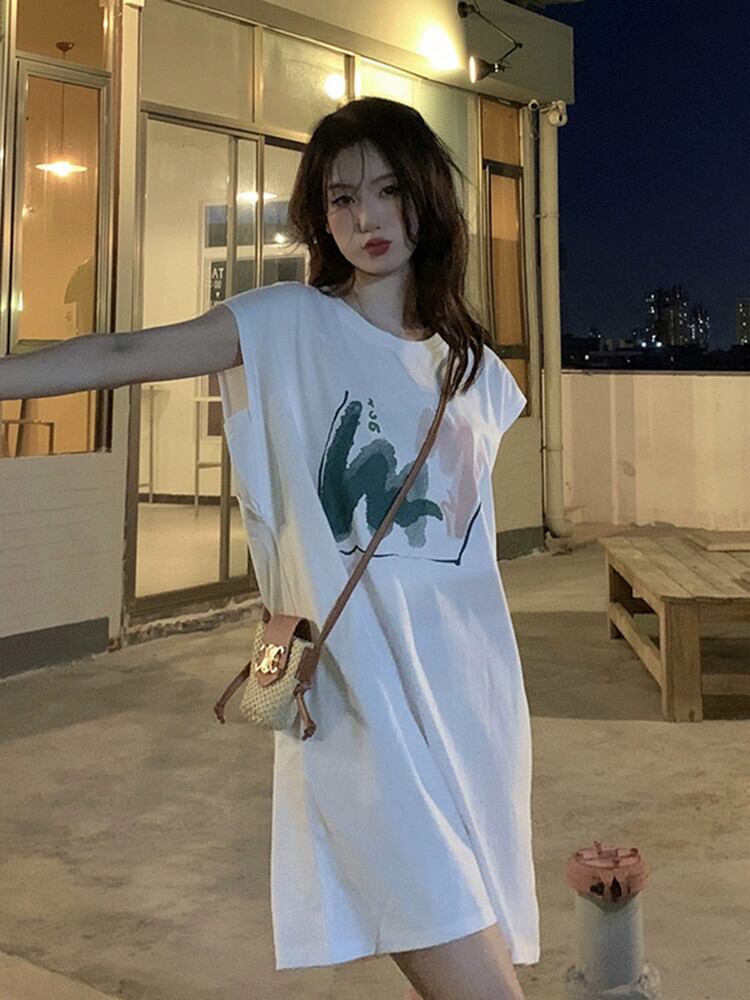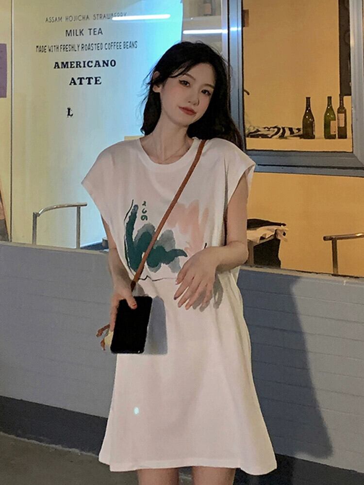 夏バージョン 2023 新しいファッション怠惰なルーズウエストショートラウンドネックノースリーブプリントベストドレス婦人服 サマー 夏物 Oネック missk26983046161
