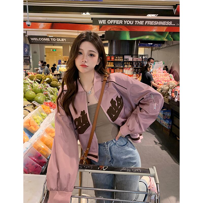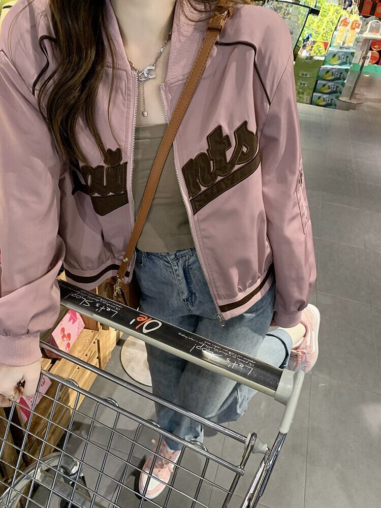 レトロ刺繍野球ユニムレディーストップ秋冬新作ルーズショートセクション長袖デザインジャケットコートイン ロング オータム 秋物 ウィンター 冬物 missk29181246928