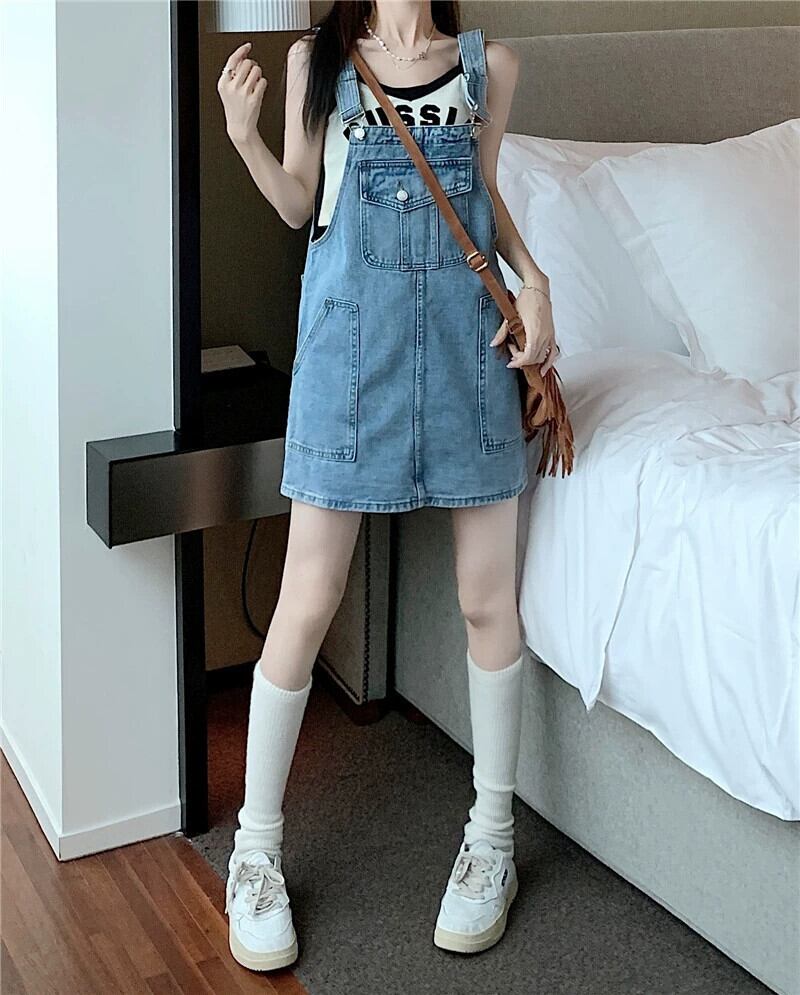 老化防止デニムサスペンダースカート 2023 夏の新しいアウターウェアのデザイン感の薄いドレスの女性のショートスカート サマー 夏物 missk33838657094