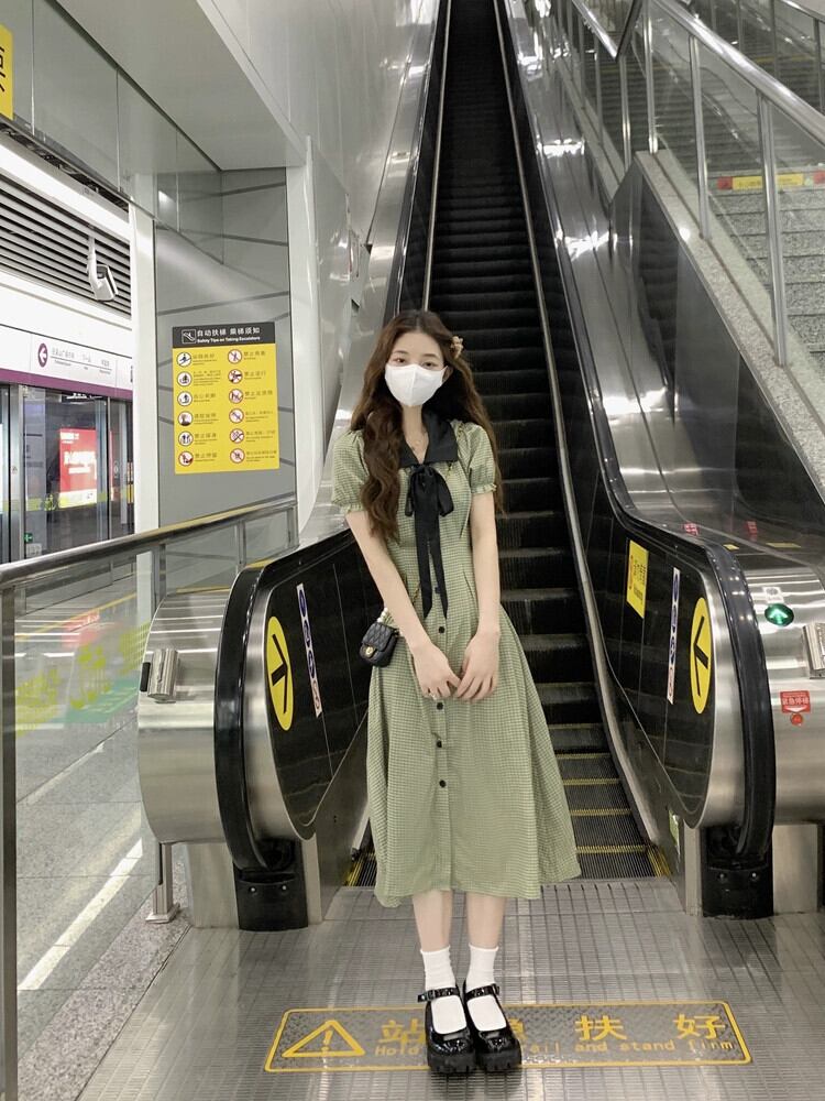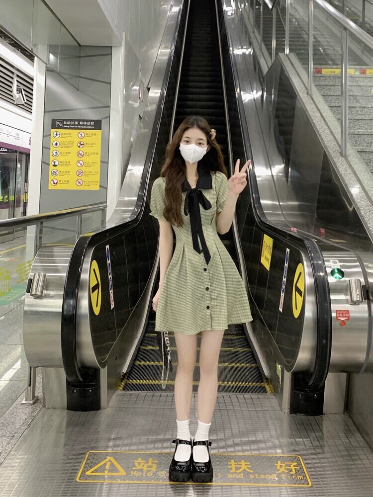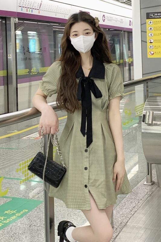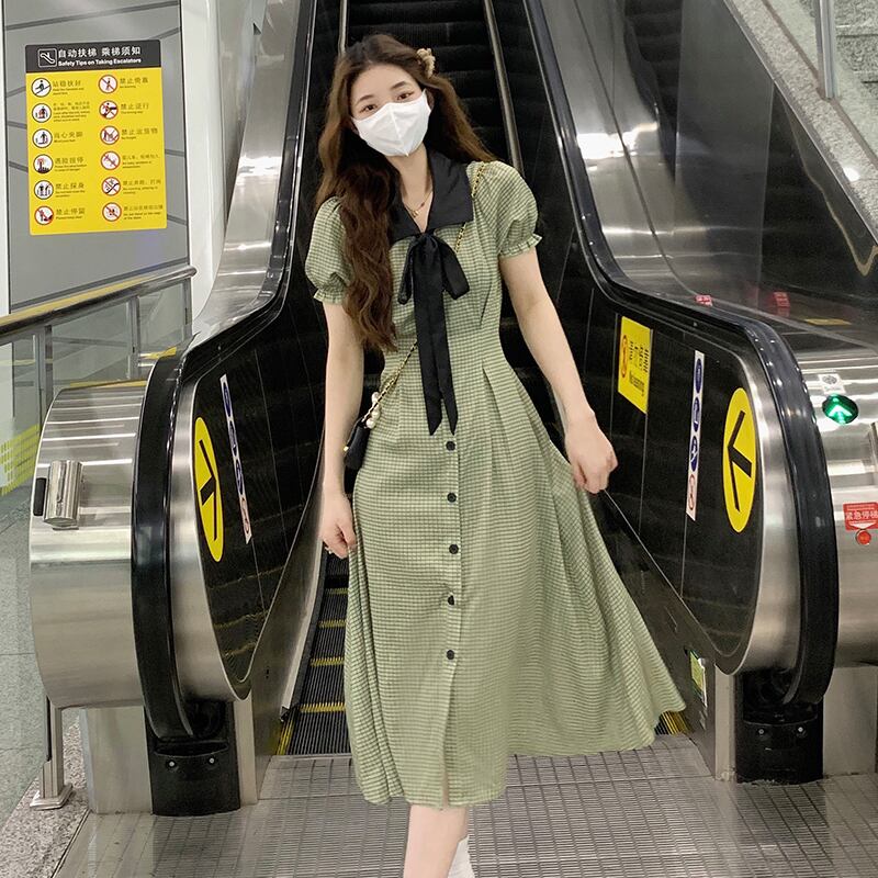 ポロカラーチェック柄ドレスレディース 2023 夏の新しい新鮮なデザイン感覚ウエスト痩身パフスリーブ A ラインスカート サマー 夏物 Aライン missk70451344720