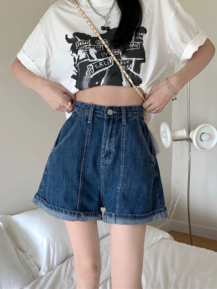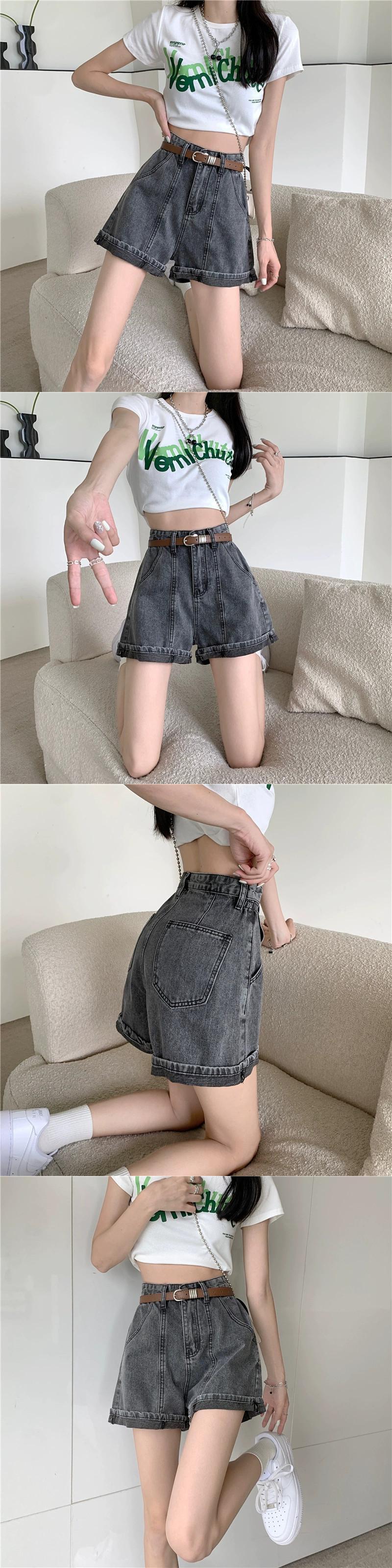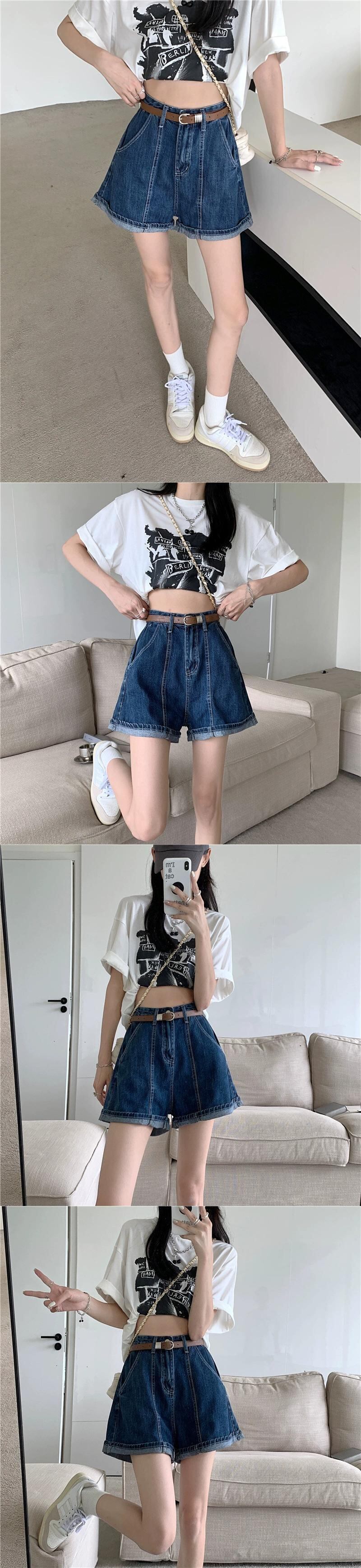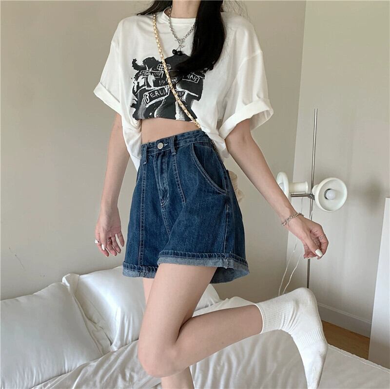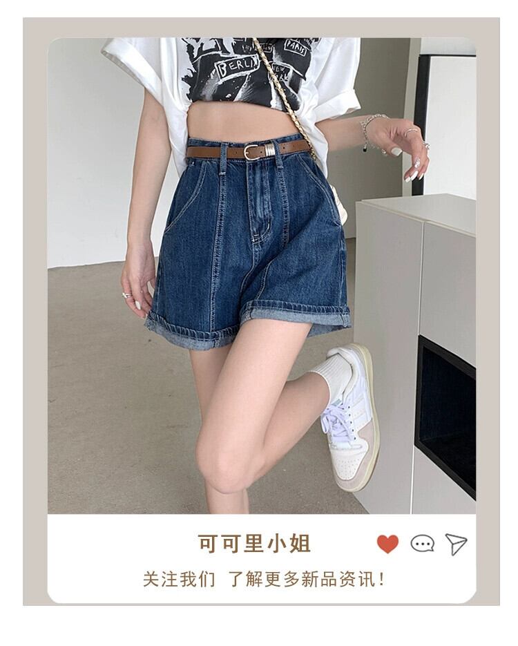 センスカーリングデニムショートパンツレディース2023夏新作ハイウエストデザインセンスネットレッドワイドレッグパンツ潮 ハイウェスト サマー 夏物 ショーツ ブルマー missk85605156043