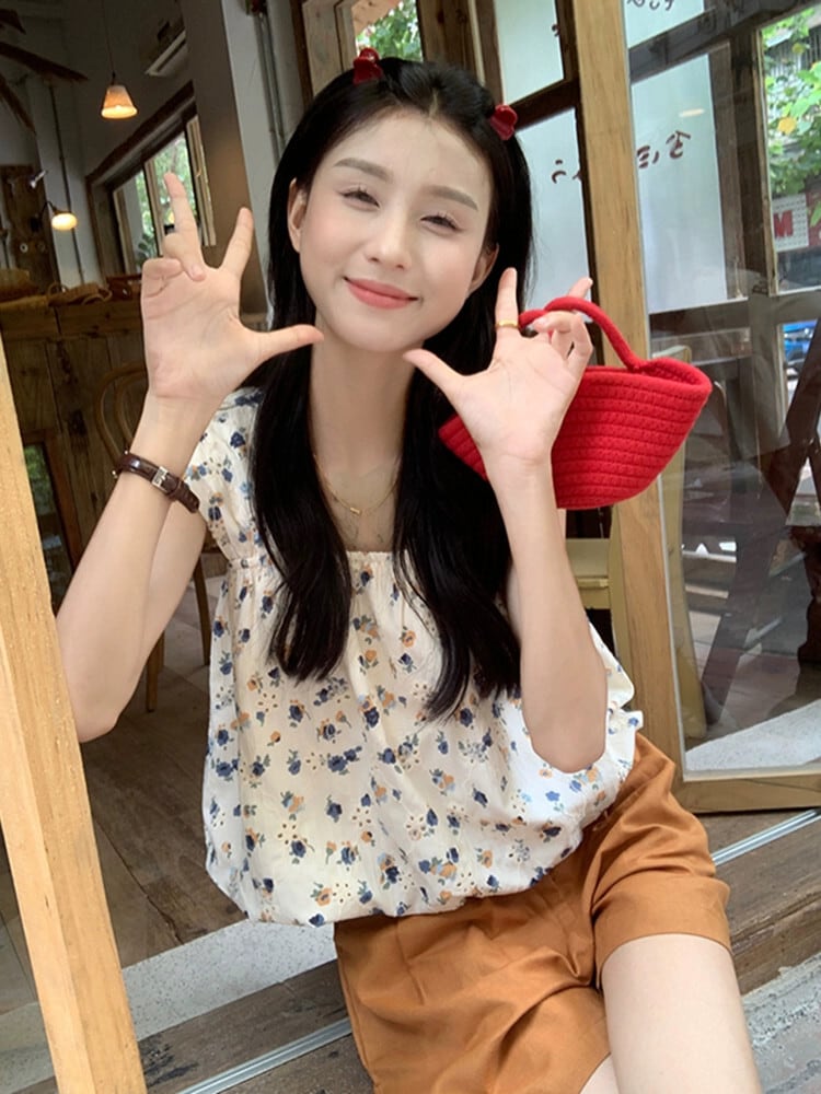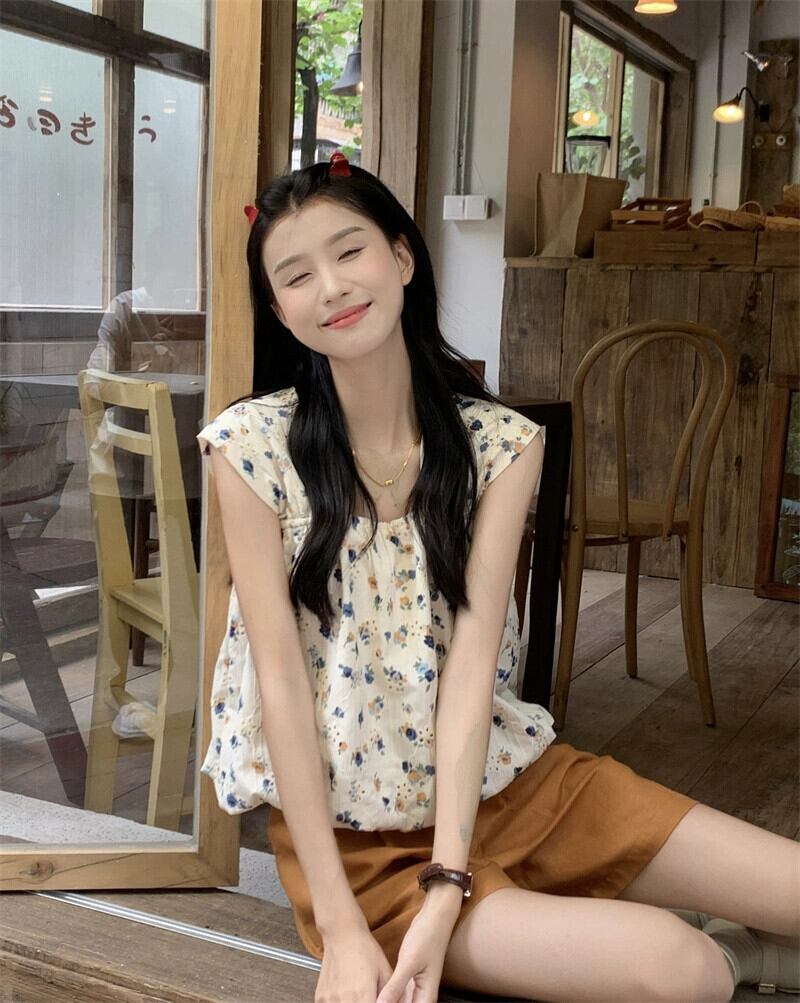 小さな新鮮なスクエアカラー重工業刺繍花柄ベスト夏 2023 新しいスリムアウターショートシックなトップ女性 レッド サマー 夏物 スクウェア missk39306868108